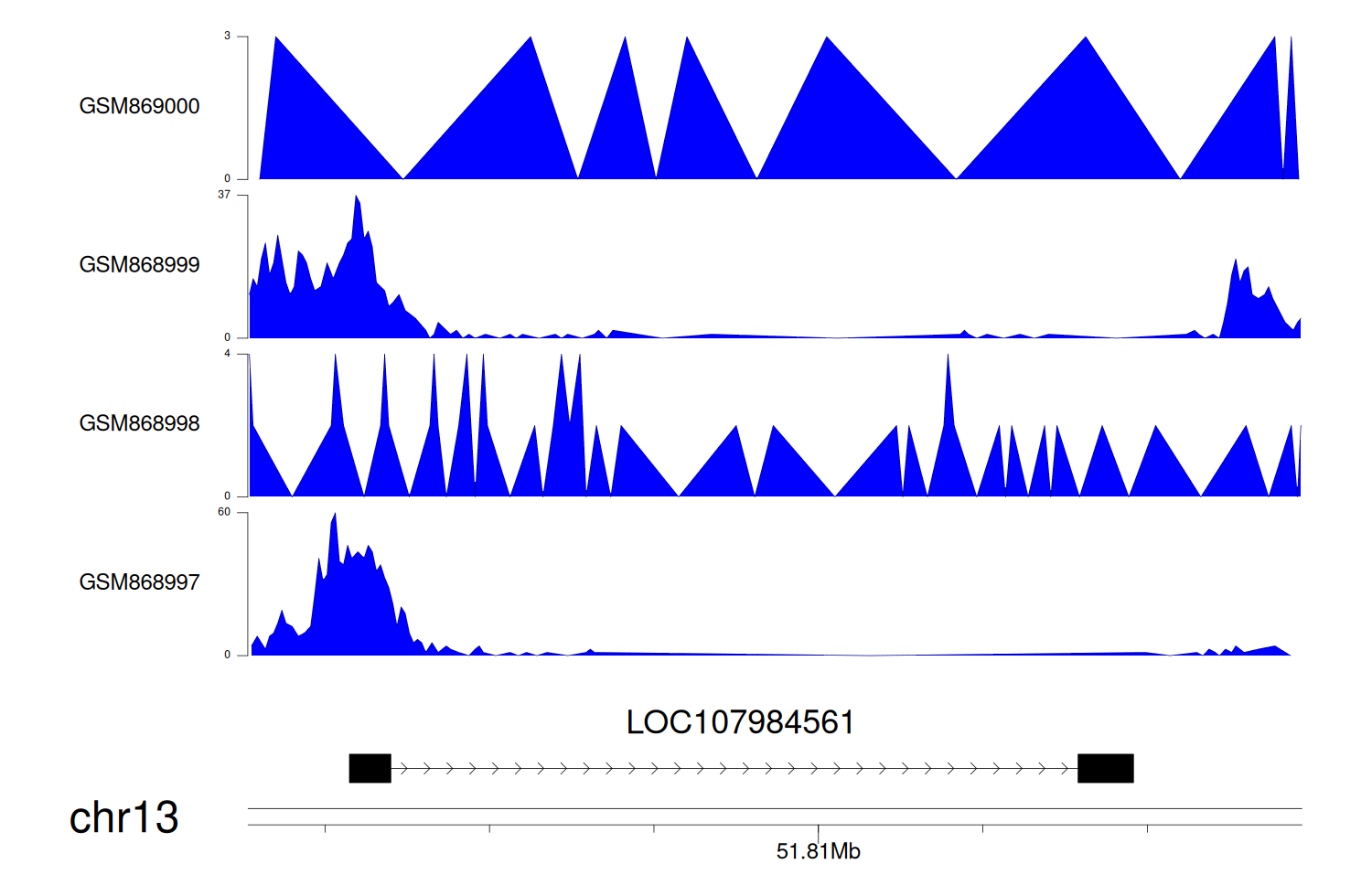 > Dataset: GSE131257 - LOC107984561 peak across samples