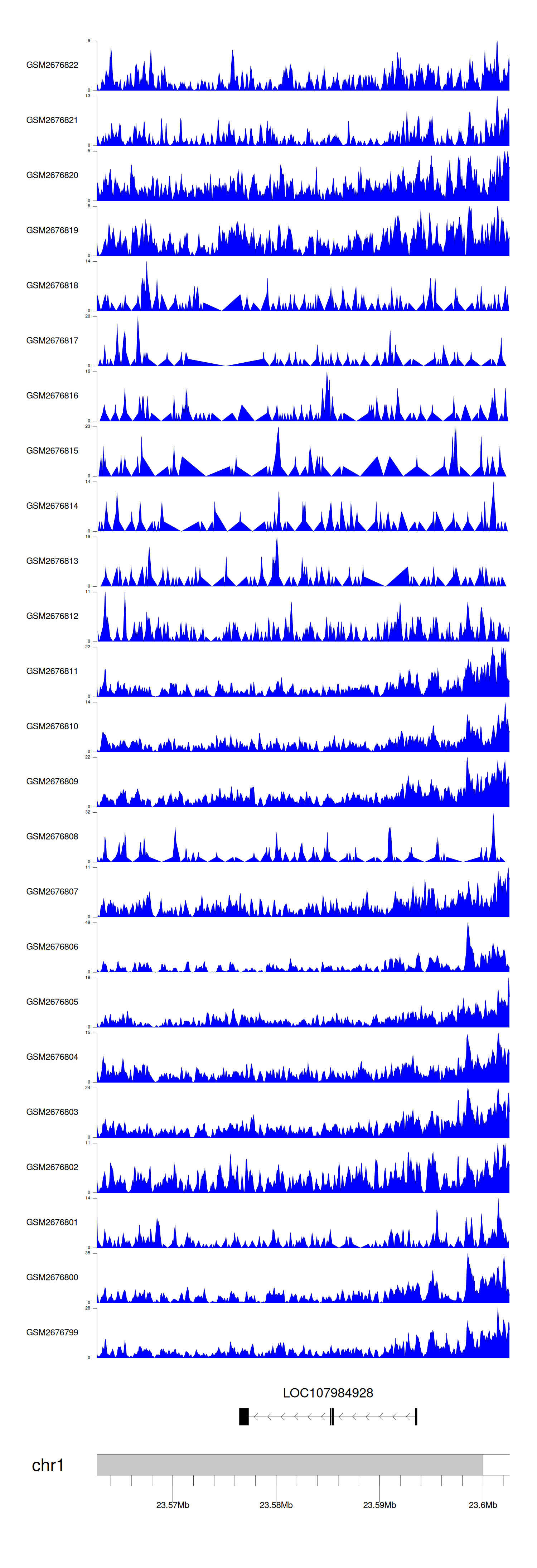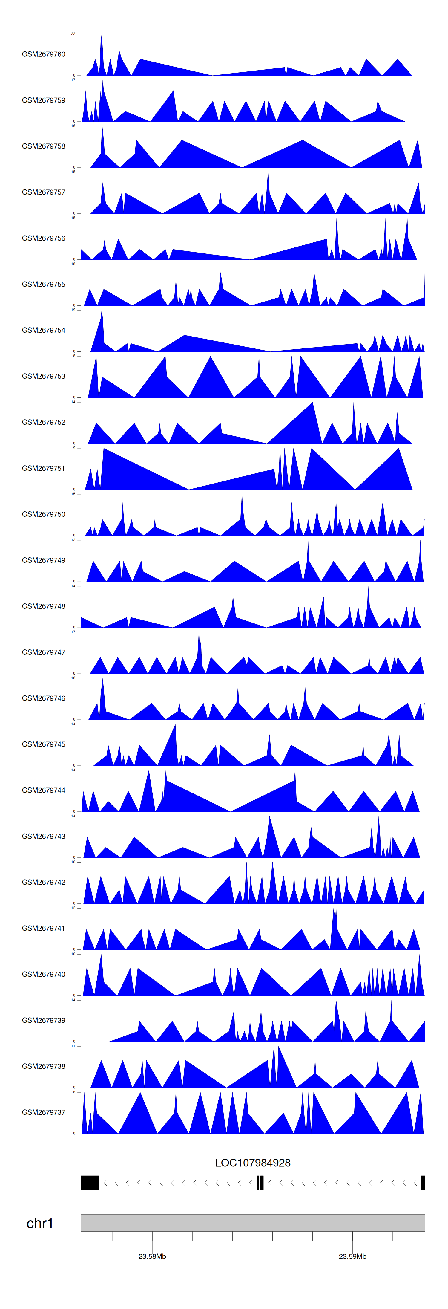 > Dataset: GSE144329 - LOC107984928 peak across samples