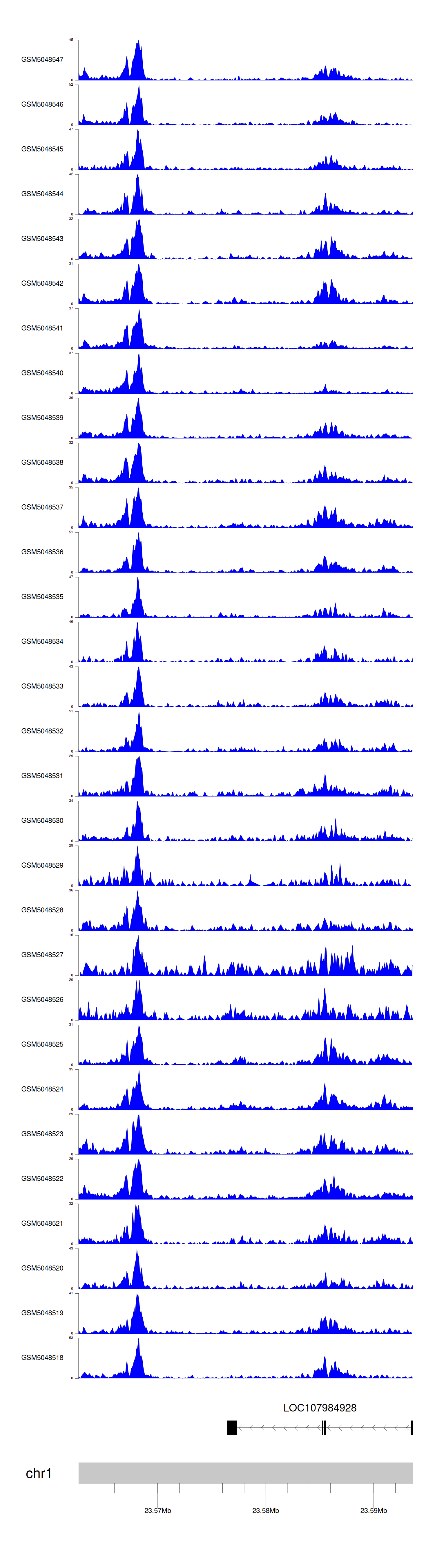 > Dataset: GSE220859 - LOC107984928 peak across samples