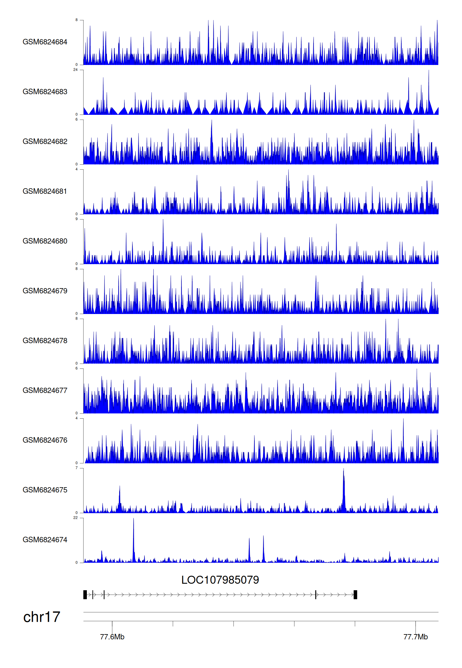 > Dataset: GSE144329 - LOC107985079 peak across samples