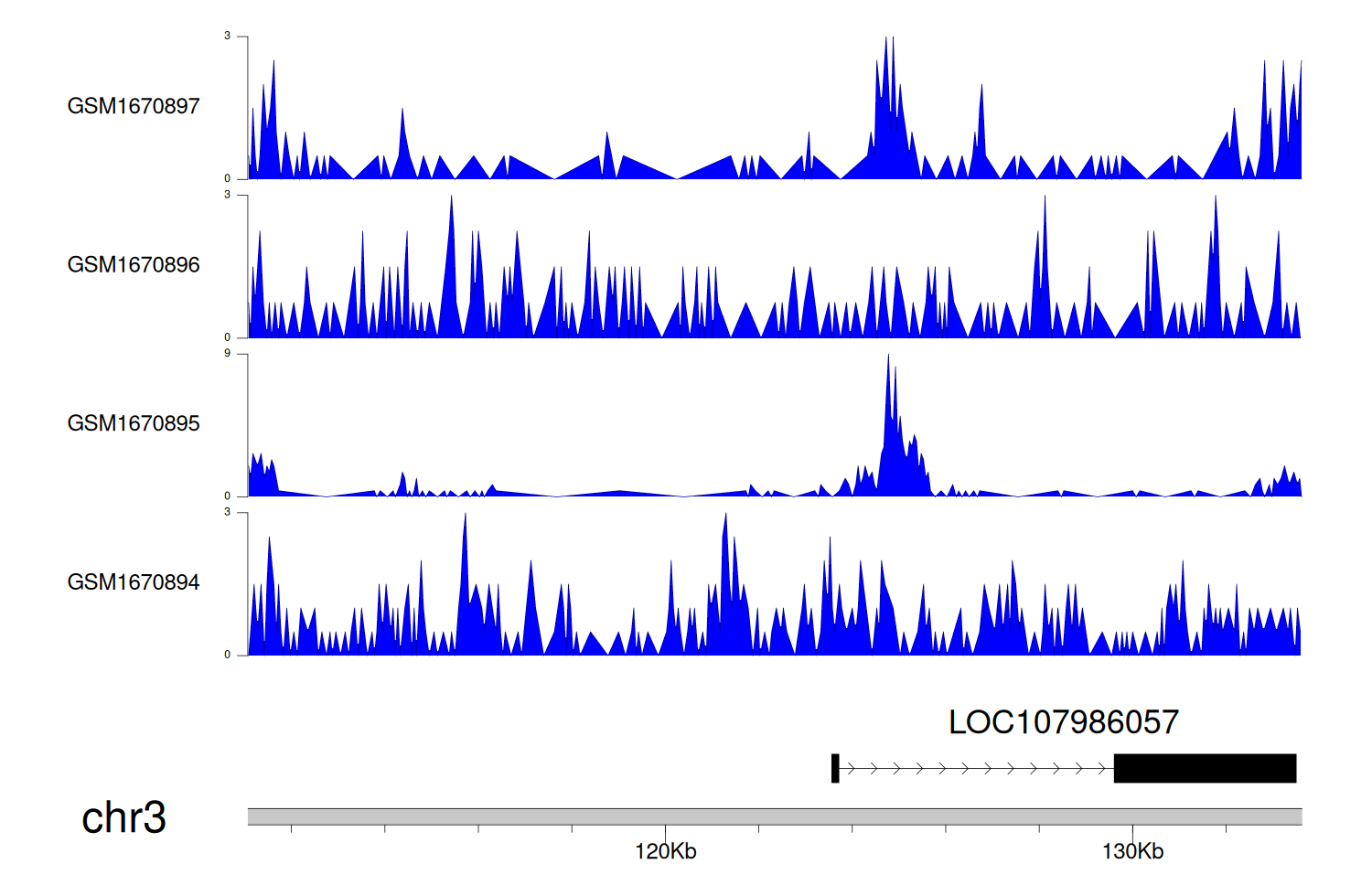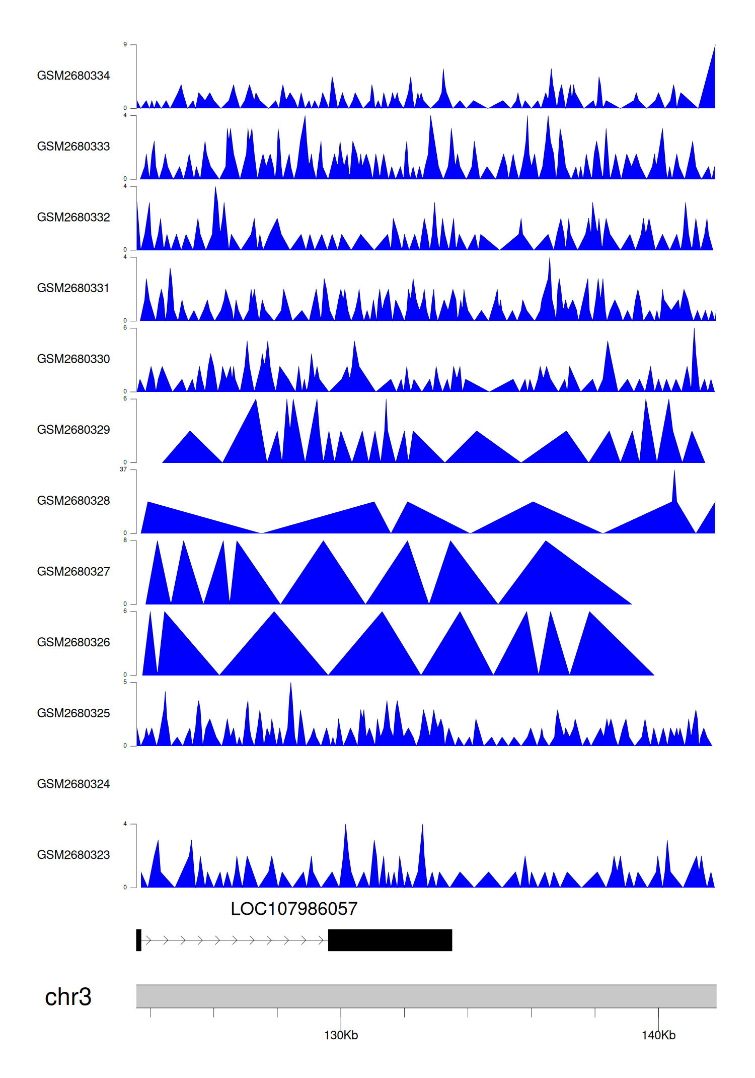 > Dataset: GSE131257 - LOC107986057 peak across samples