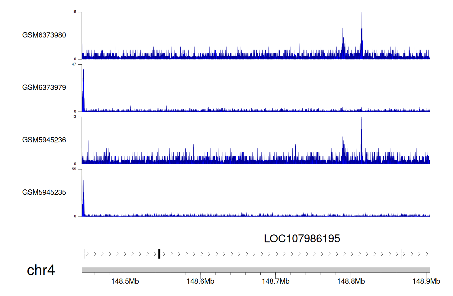 > Dataset: GSE225248 - LOC107986195 peak across samples