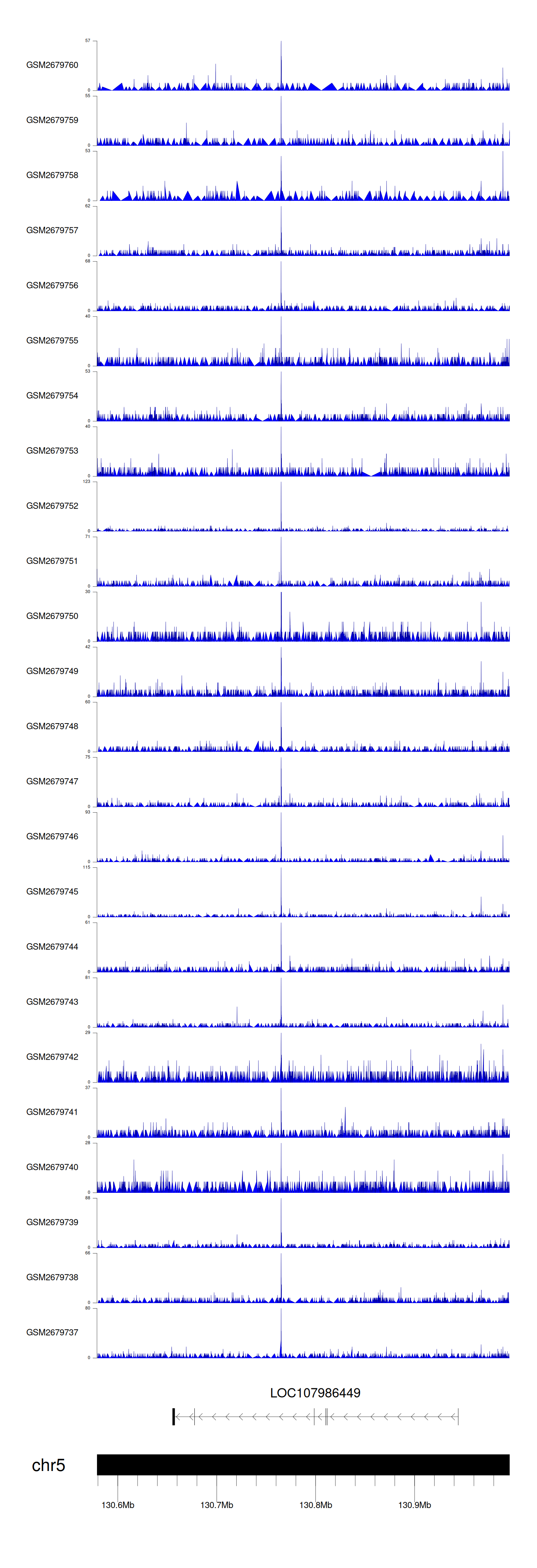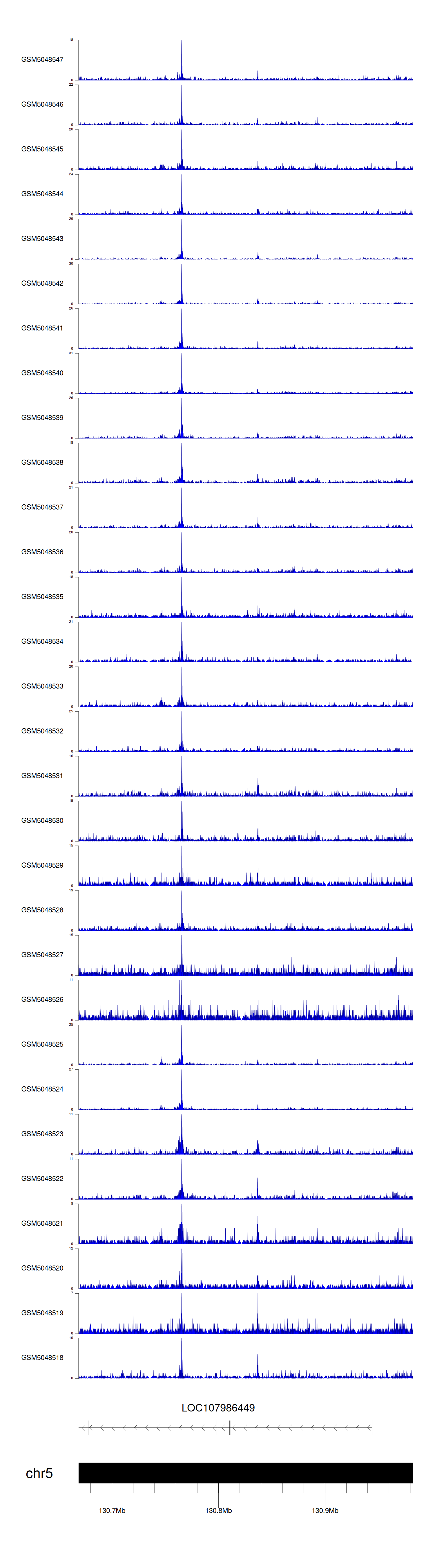 > Dataset: GSE144329 - LOC107986449 peak across samples