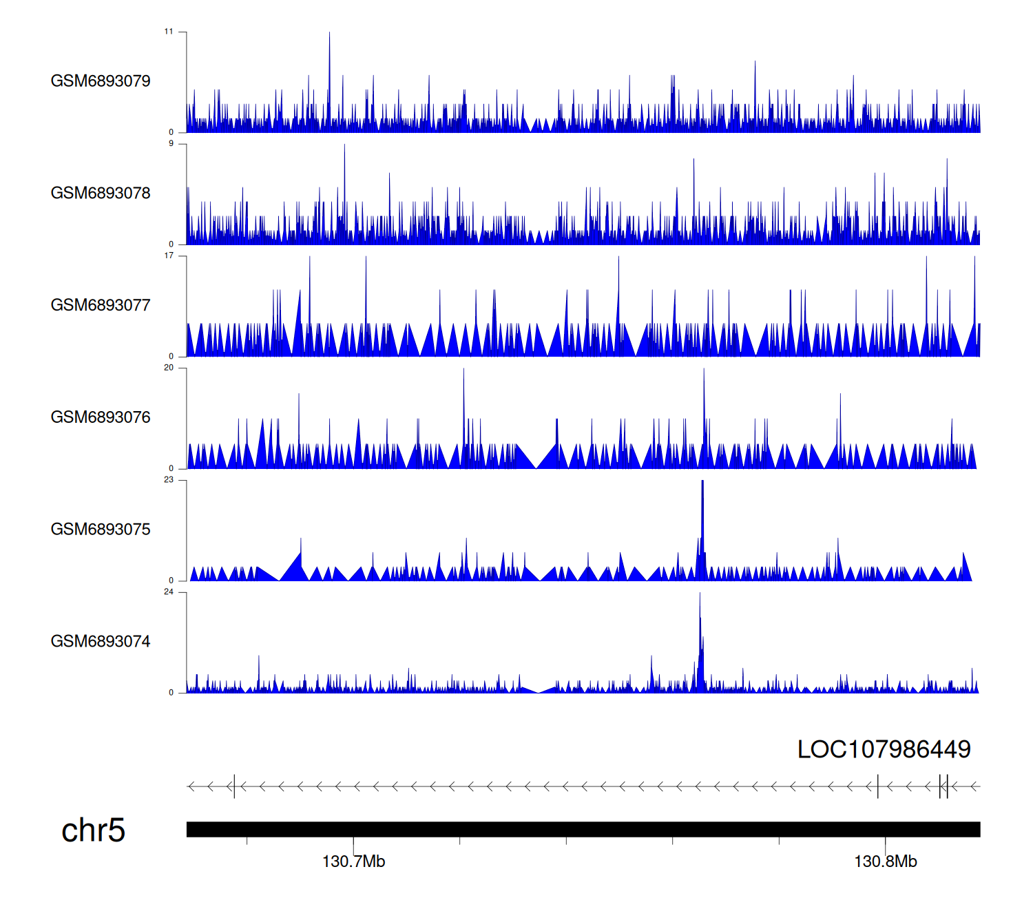 > Dataset: GSE220859 - LOC107986449 peak across samples
