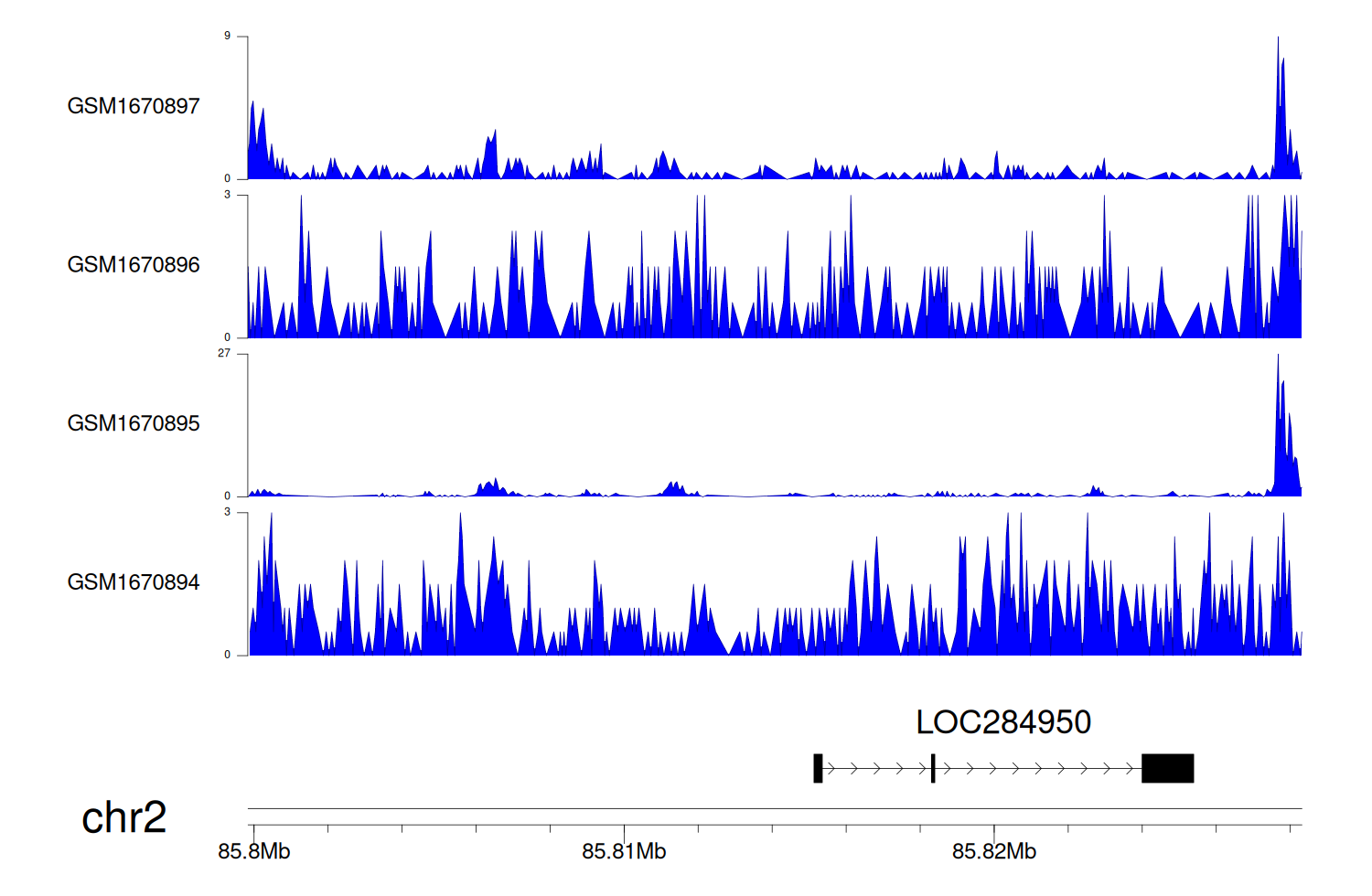 > Dataset: GSE68402 - LOC284950 peak across samples