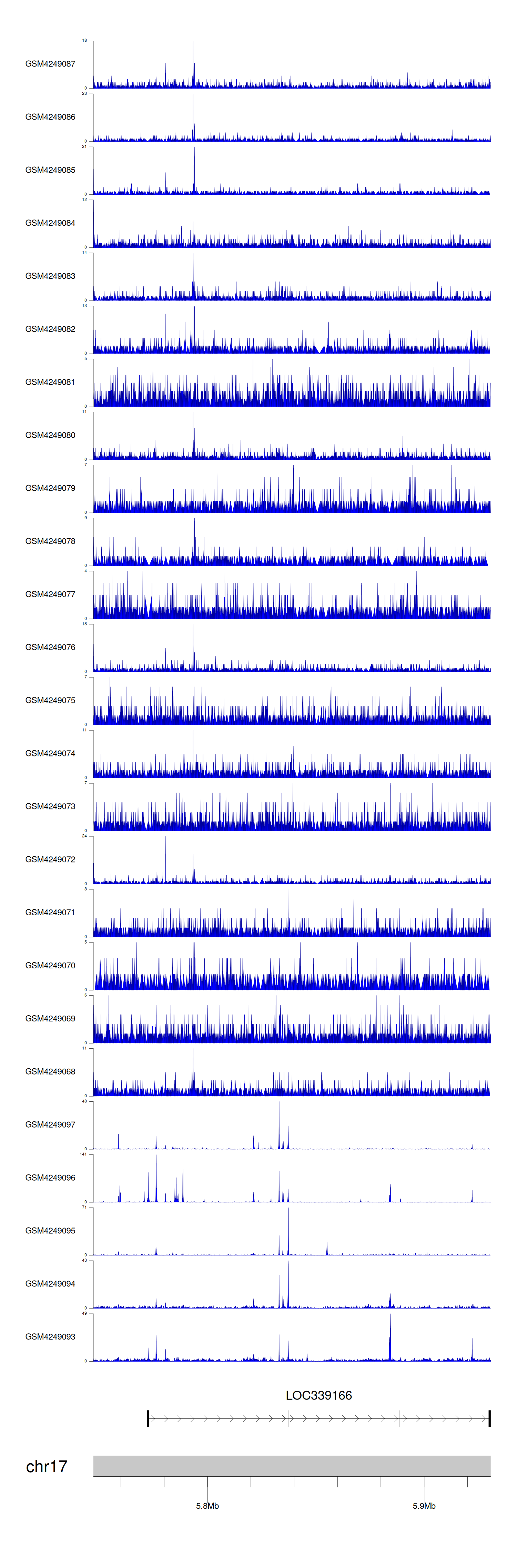 > Dataset: GSE143026 - LOC339166 peak across samples