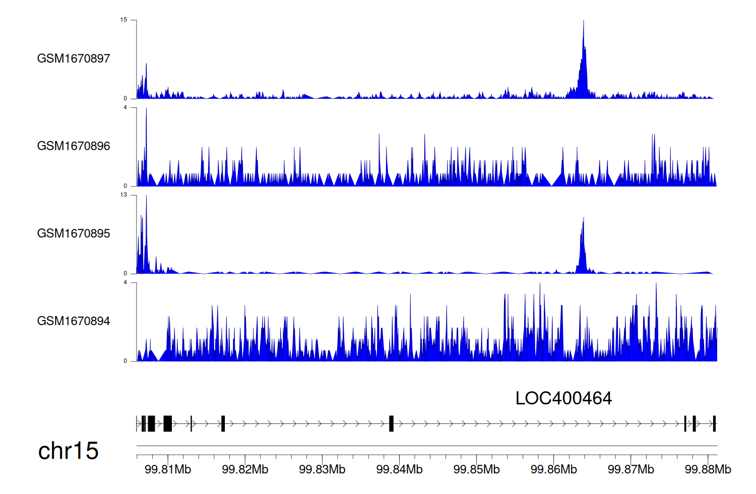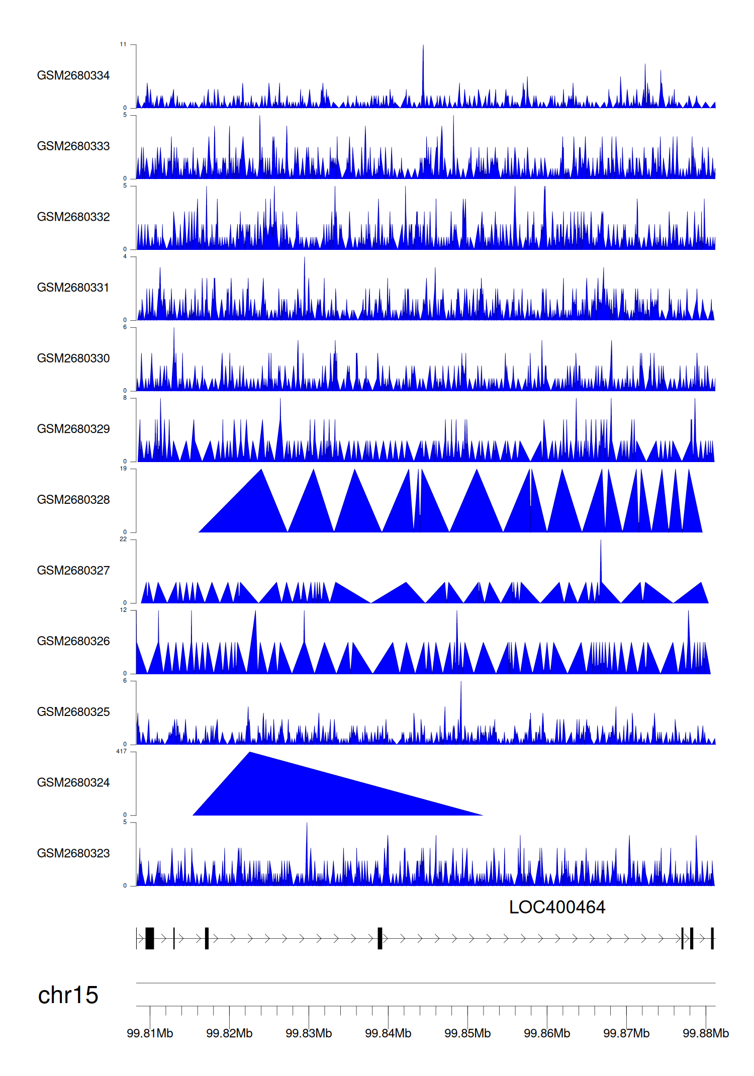 > Dataset: GSE100400 - LOC400464 peak across samples
