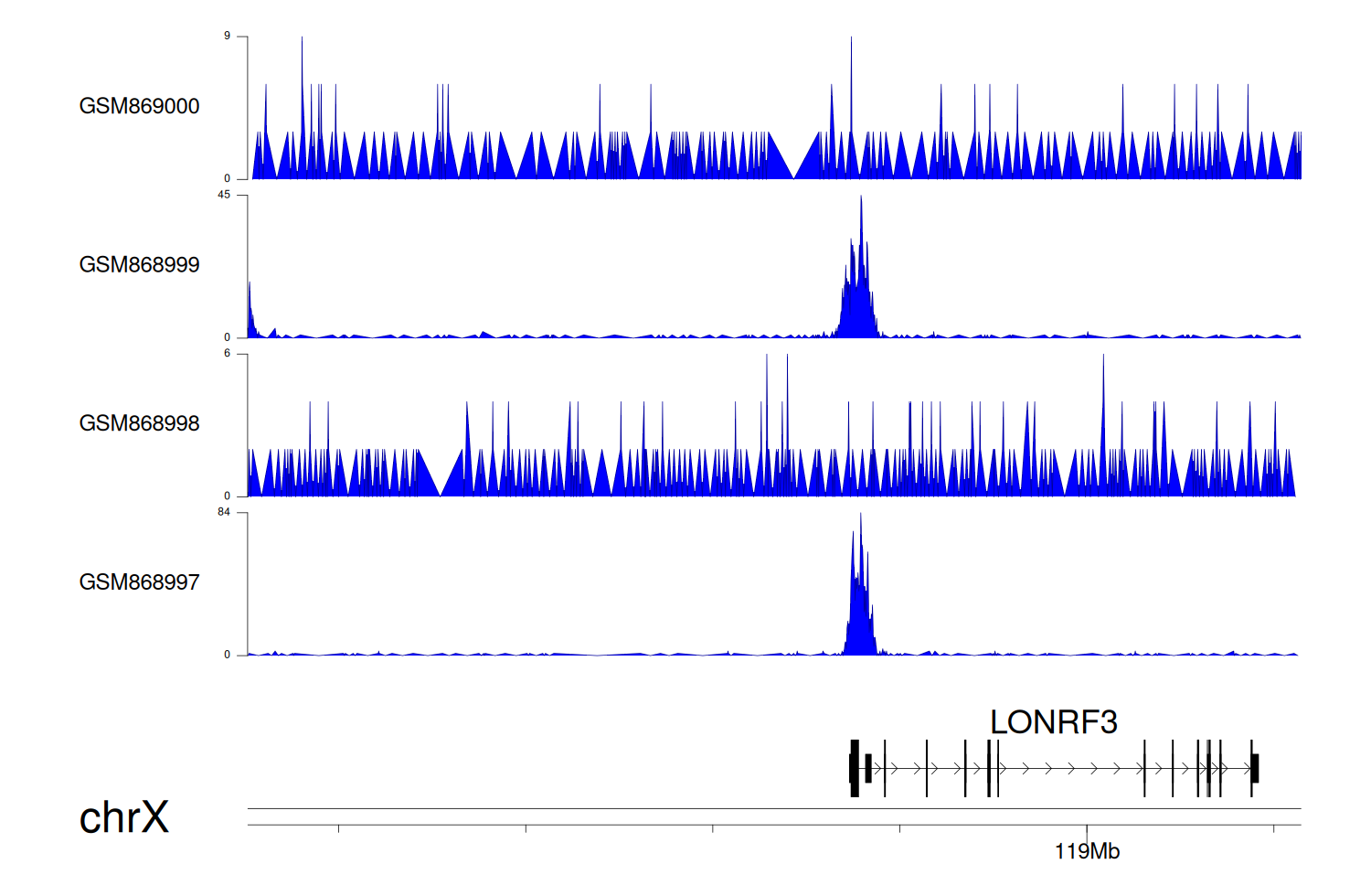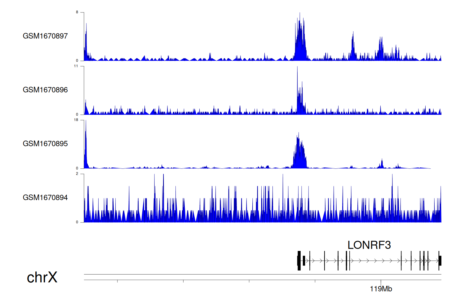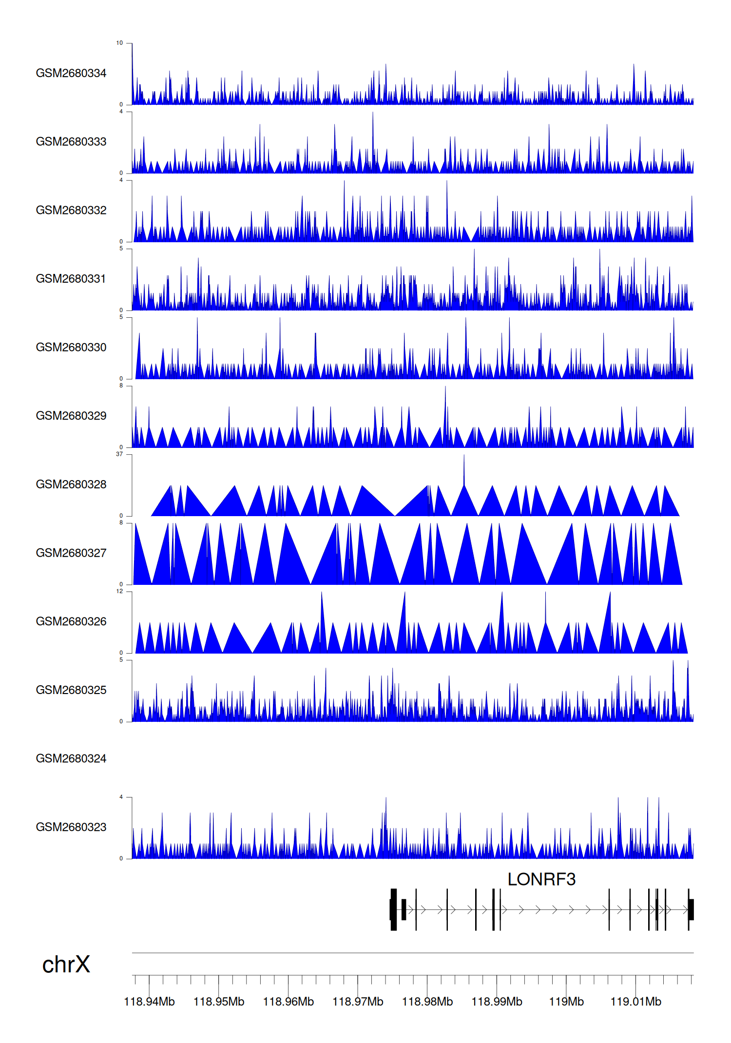 > Dataset: GSE100400 - LONRF3 peak across samples