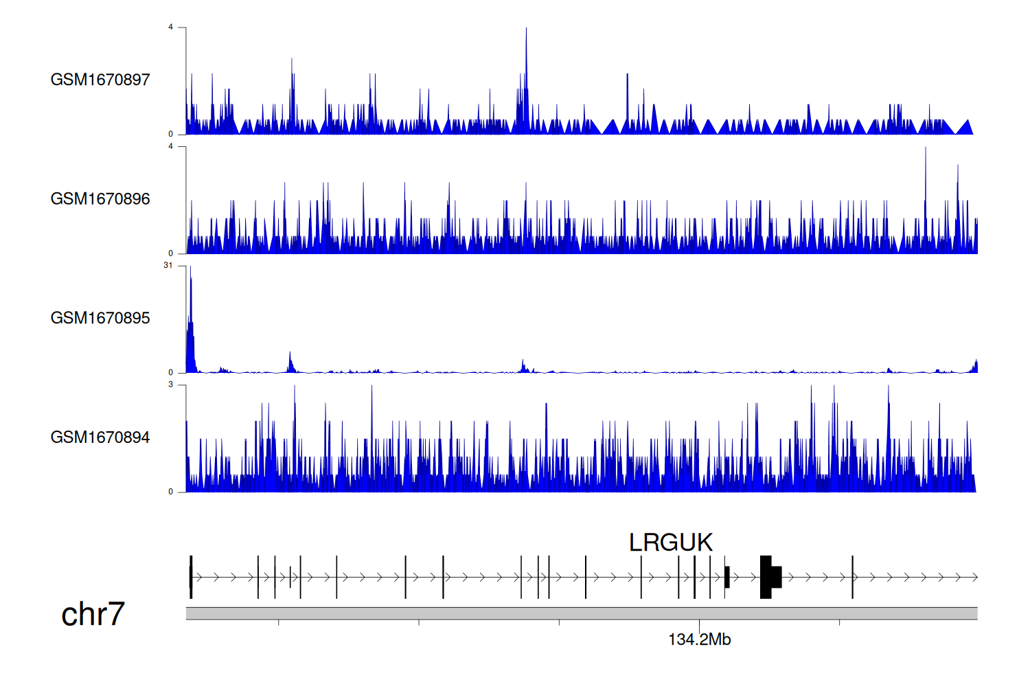 > Dataset: GSE131257 - LRGUK peak across samples