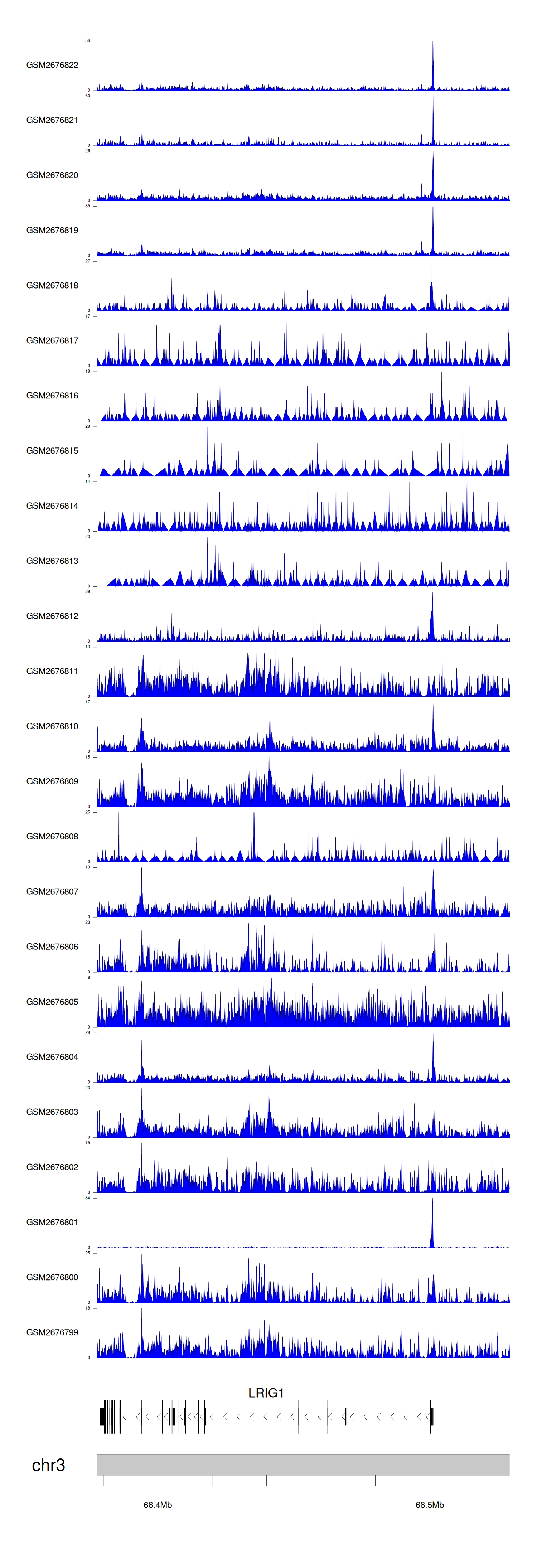 > Dataset: GSE100266 - LRIG1 peak across samples