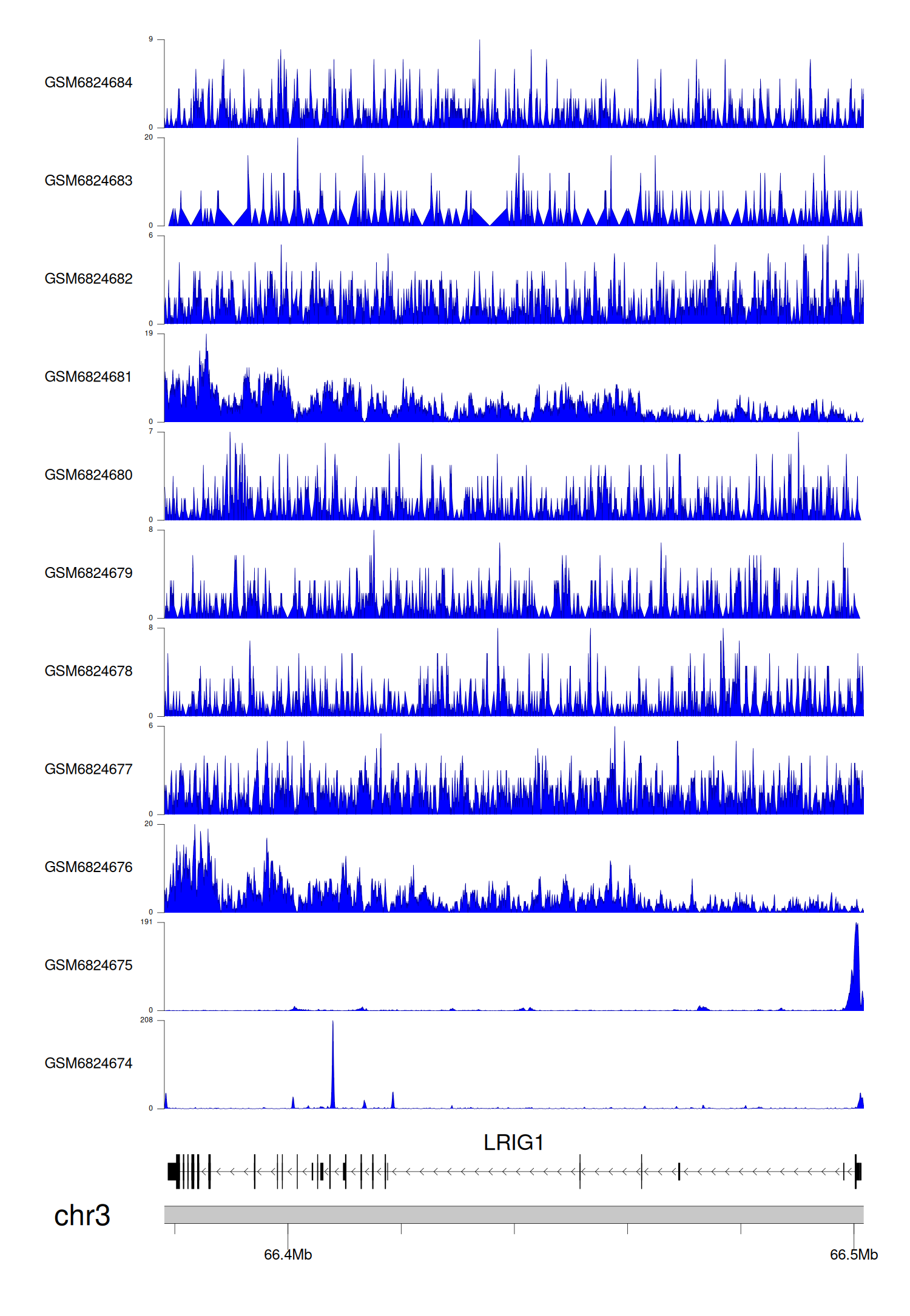 > Dataset: GSE165703 - LRIG1 peak across samples