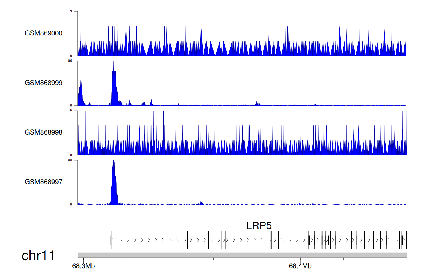 > Dataset: GSE68402 - LRP5 peak across samples