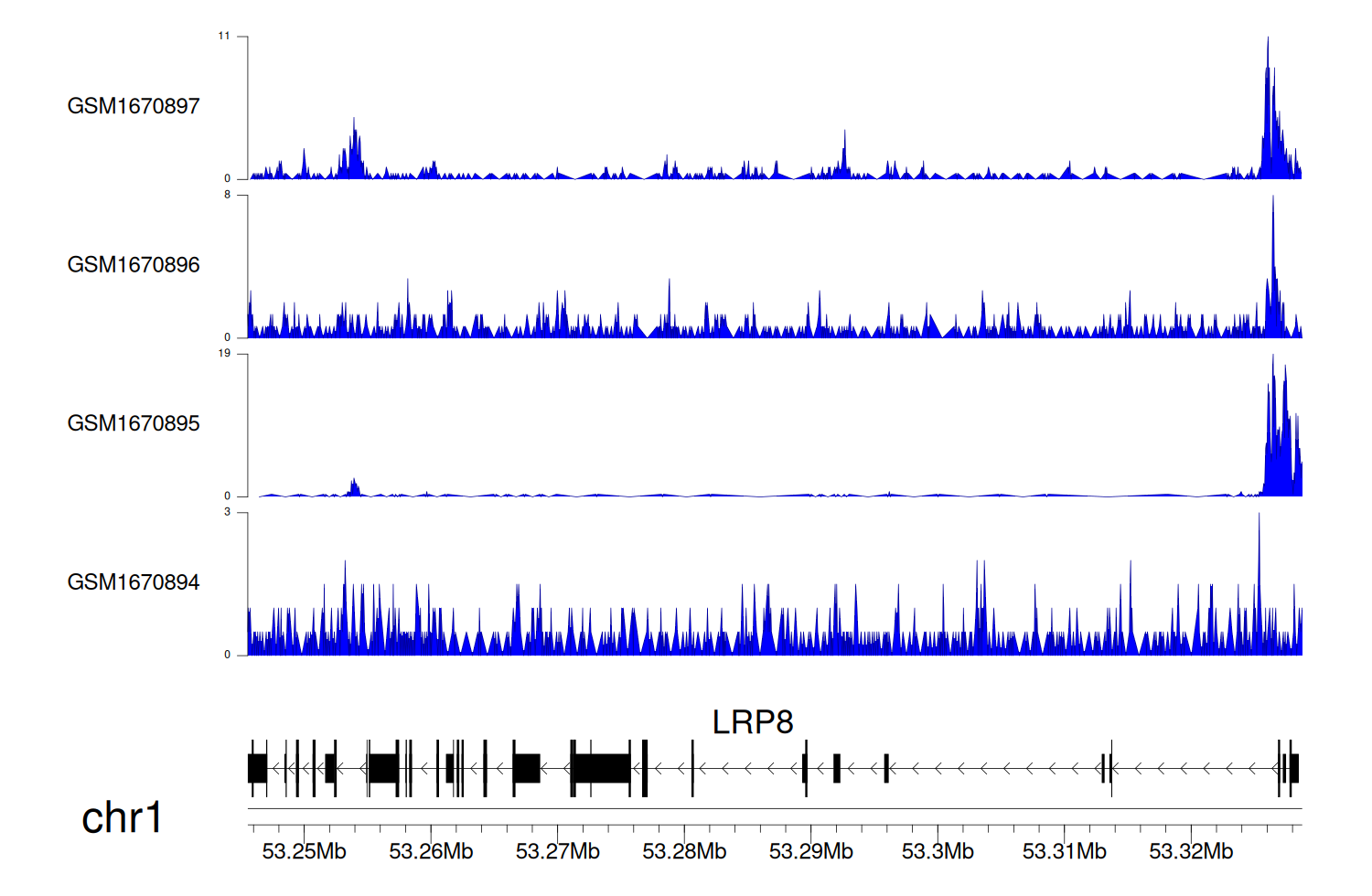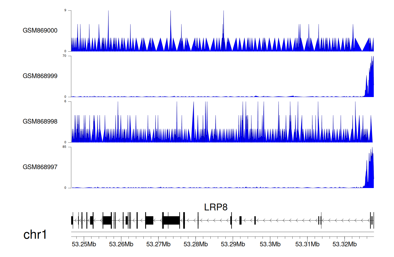 > Dataset: GSE68402 - LRP8 peak across samples