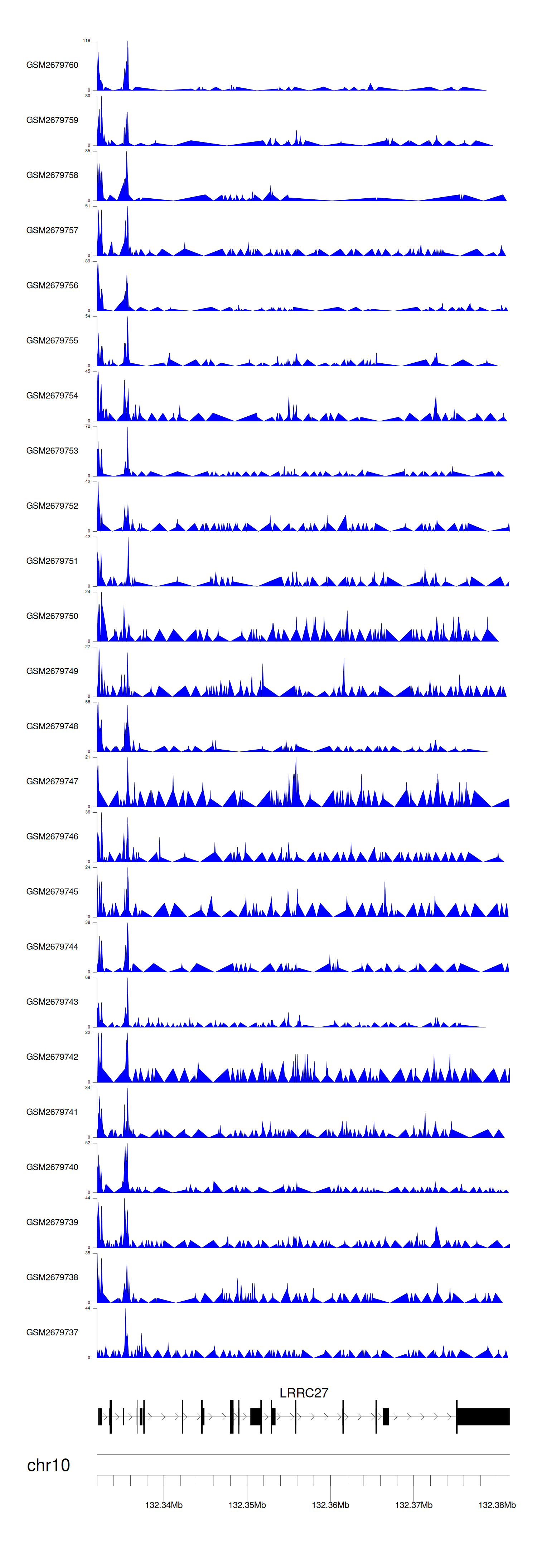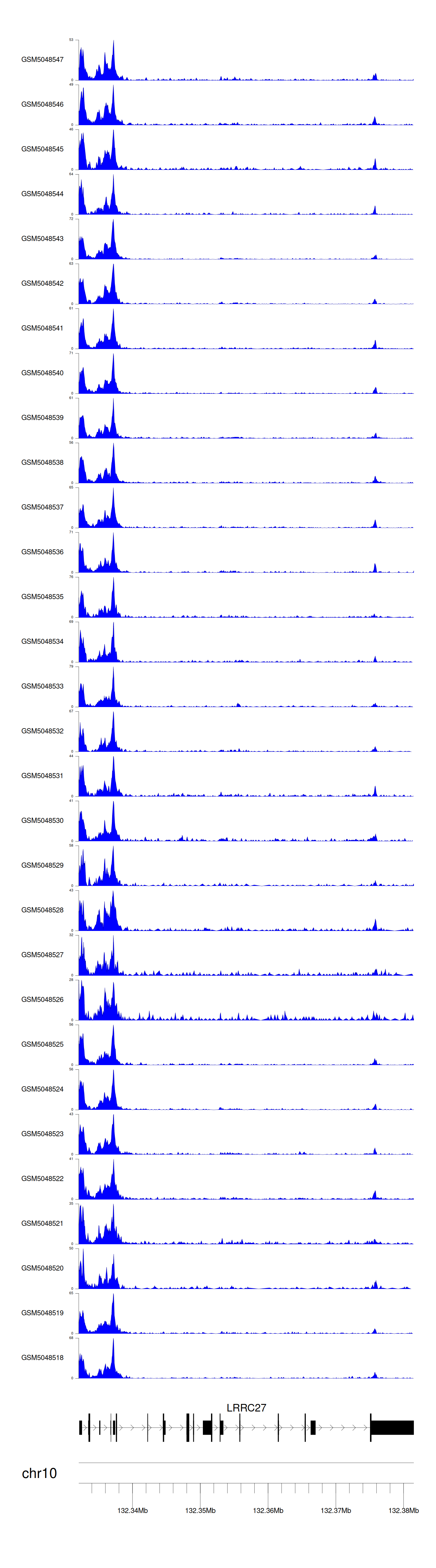 > Dataset: GSE100376 - LRRC27 peak across samples