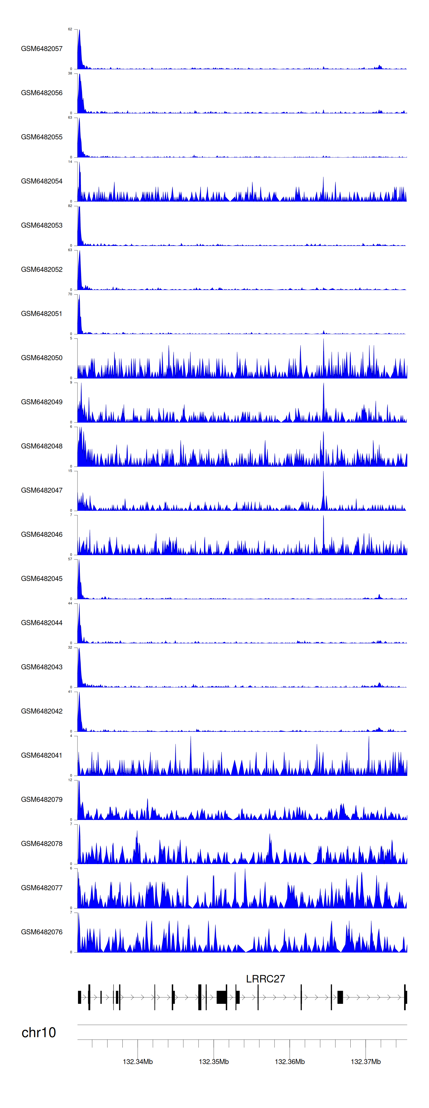 > Dataset: GSE165703 - LRRC27 peak across samples