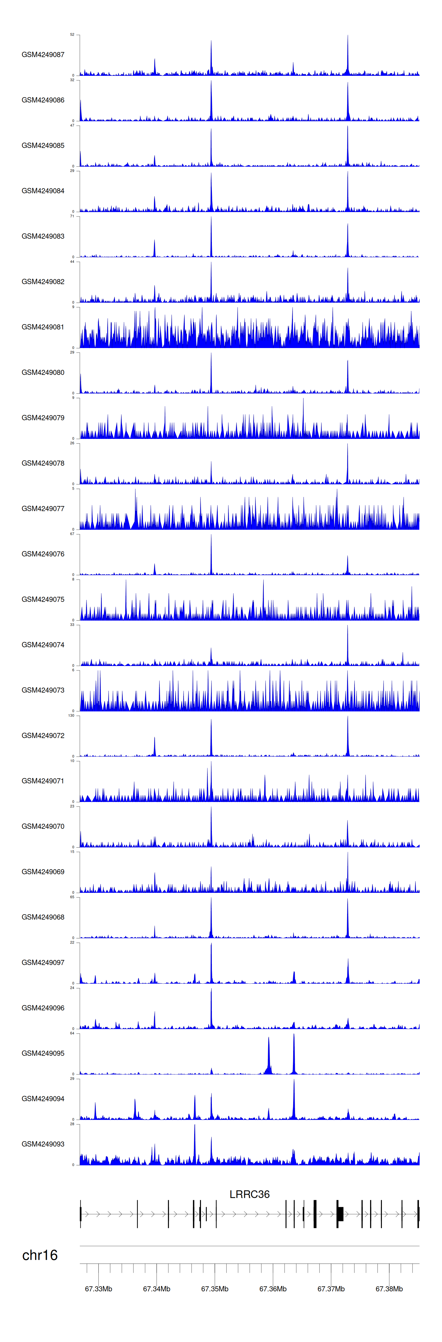 > Dataset: GSE143026 - LRRC36 peak across samples