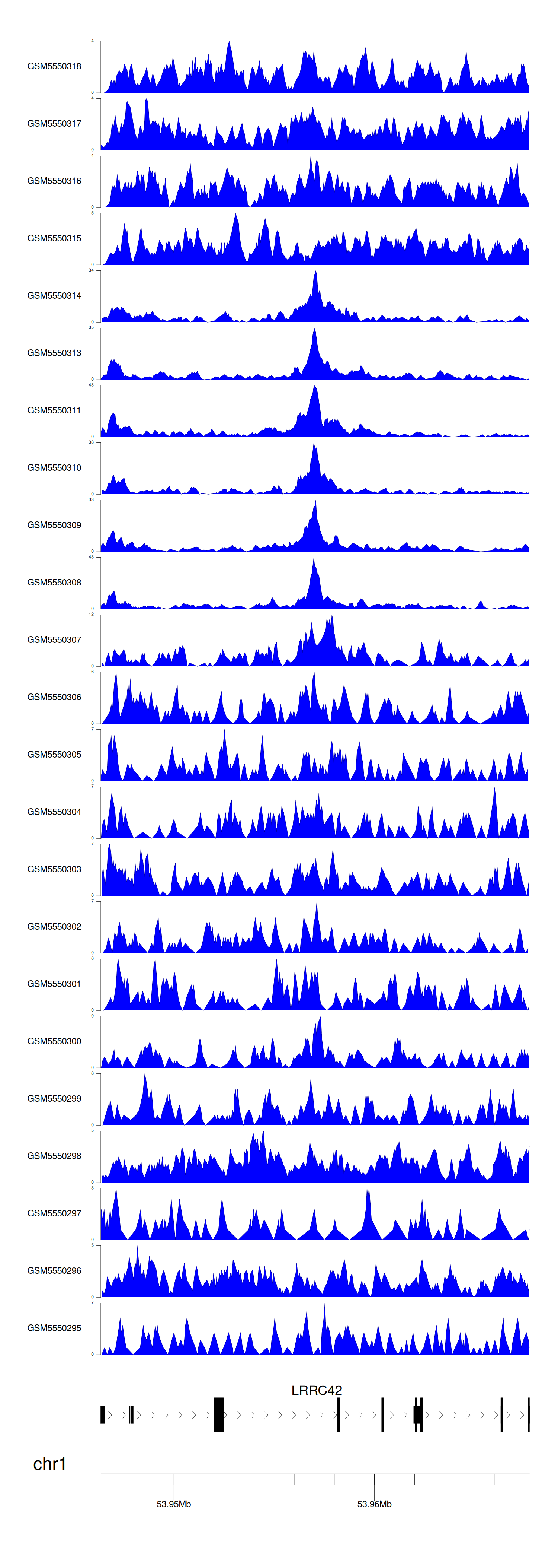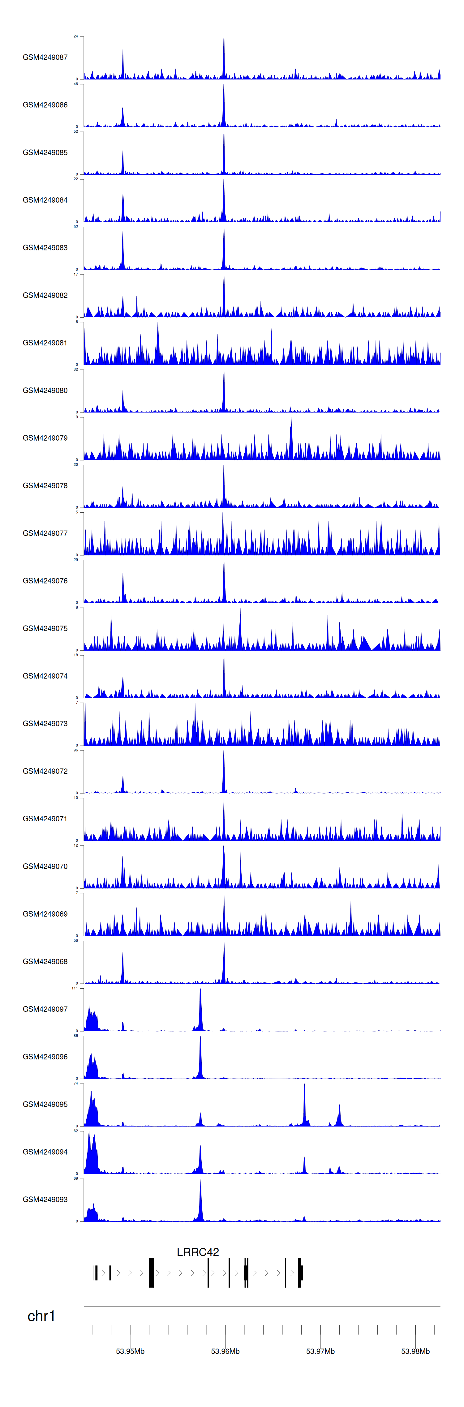 > Dataset: GSE143026 - LRRC42 peak across samples
