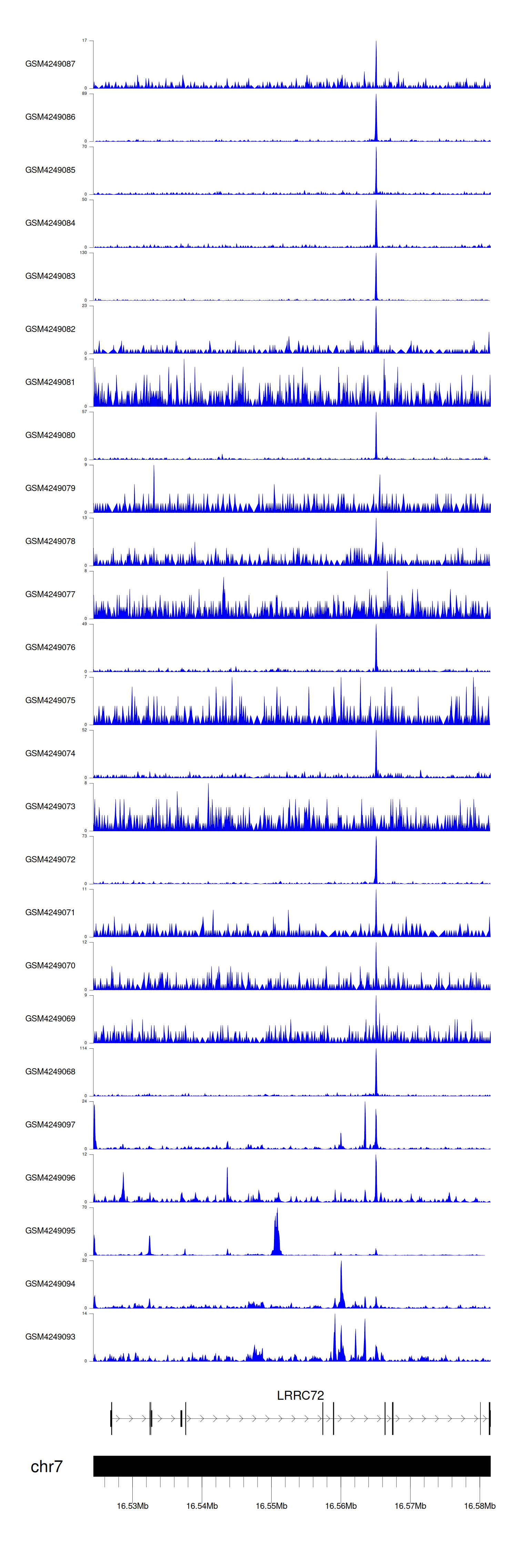 > Dataset: GSE143026 - LRRC72 peak across samples
