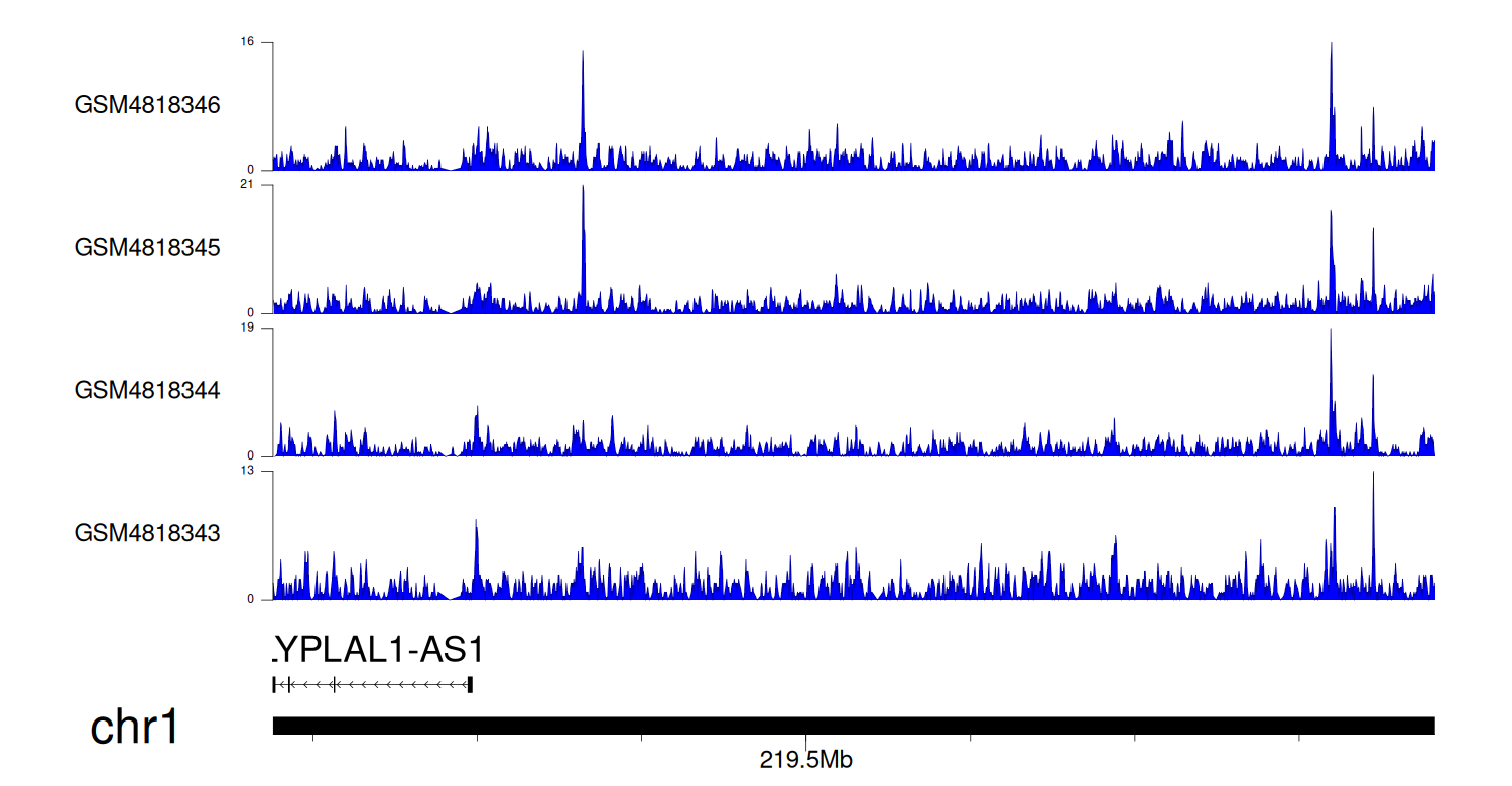 > Dataset: GSE131257 - LYPLAL1-AS1 peak across samples