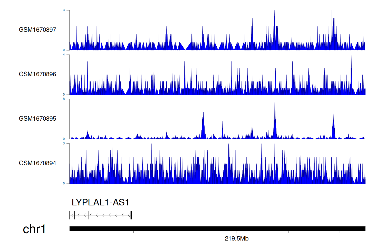 > Dataset: GSE68402 - LYPLAL1-AS1 peak across samples