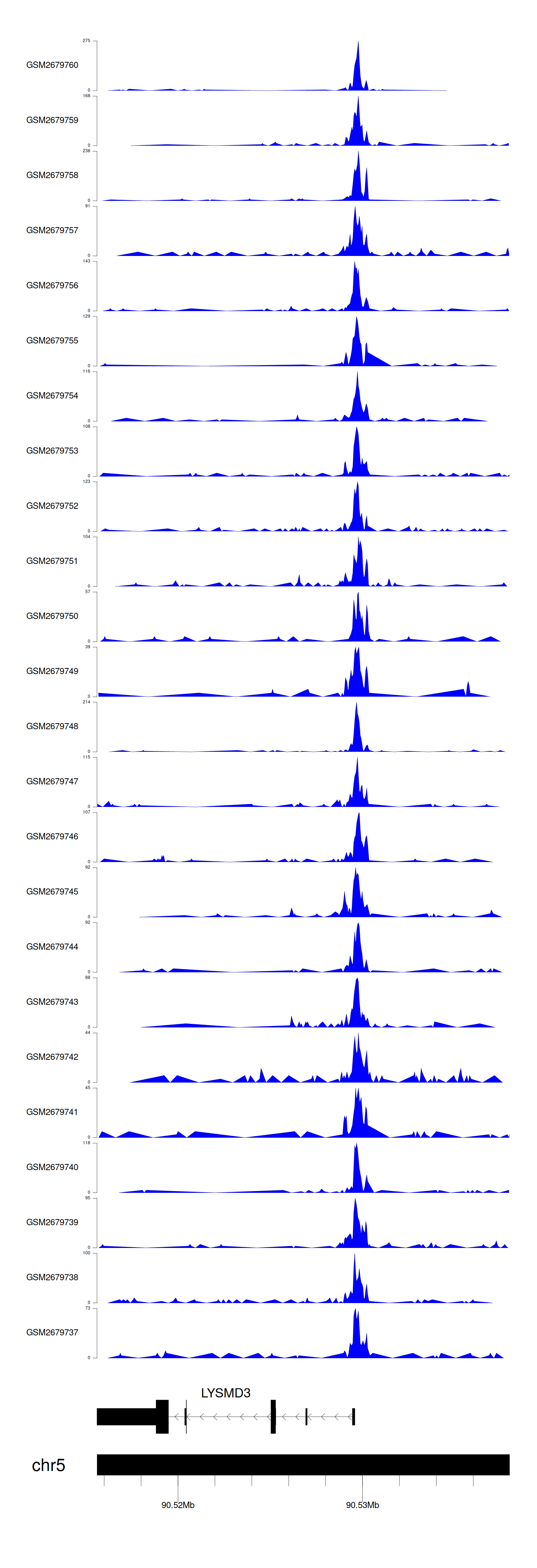 > Dataset: GSE165703 - LYSMD3 peak across samples