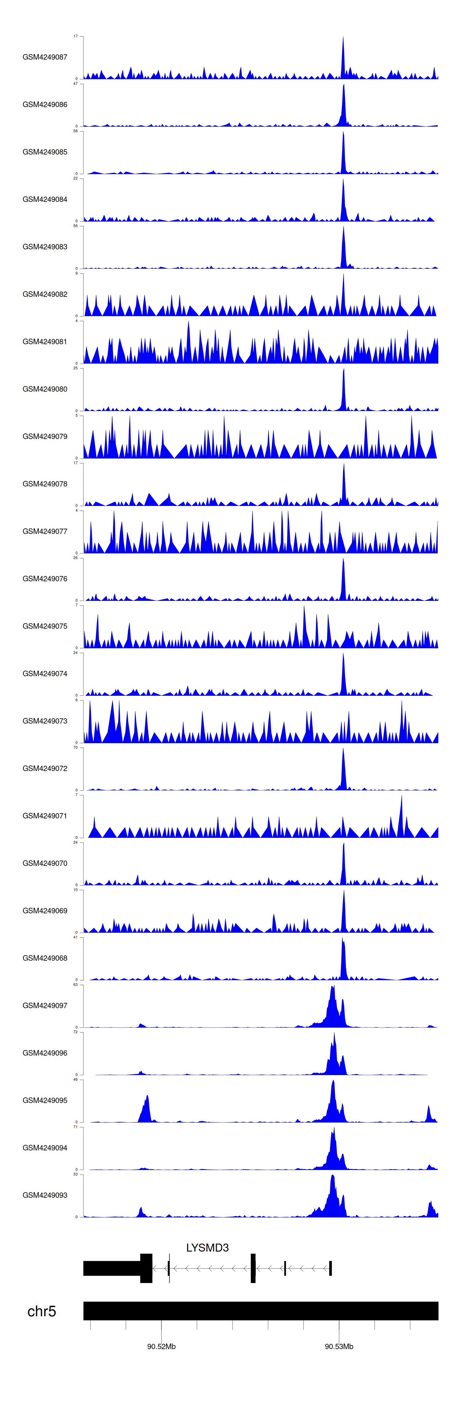> Dataset: GSE143026 - LYSMD3 peak across samples