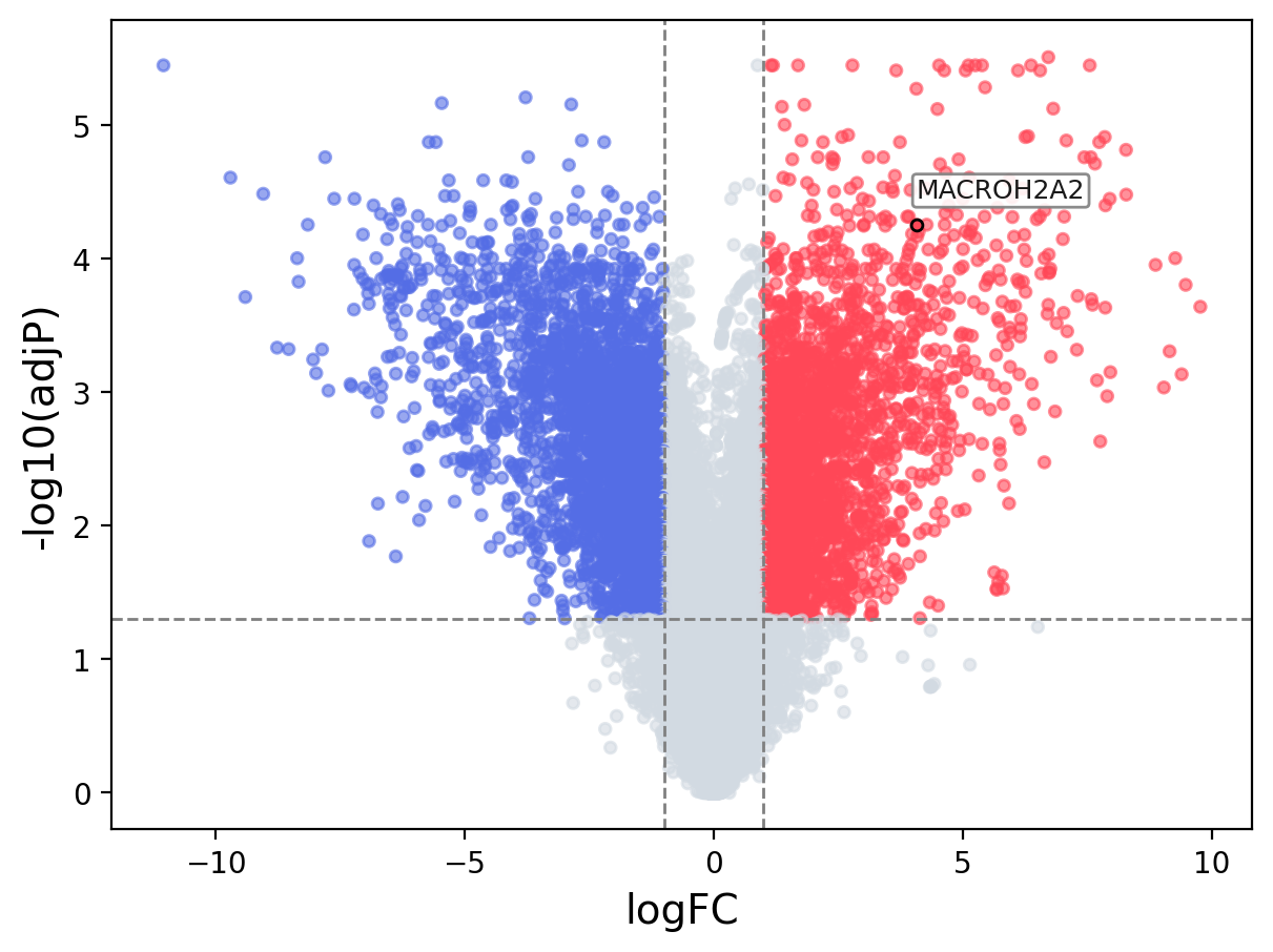 When the query gene is differentially changed in the dataset, a volcano/bar plot will be displayed.