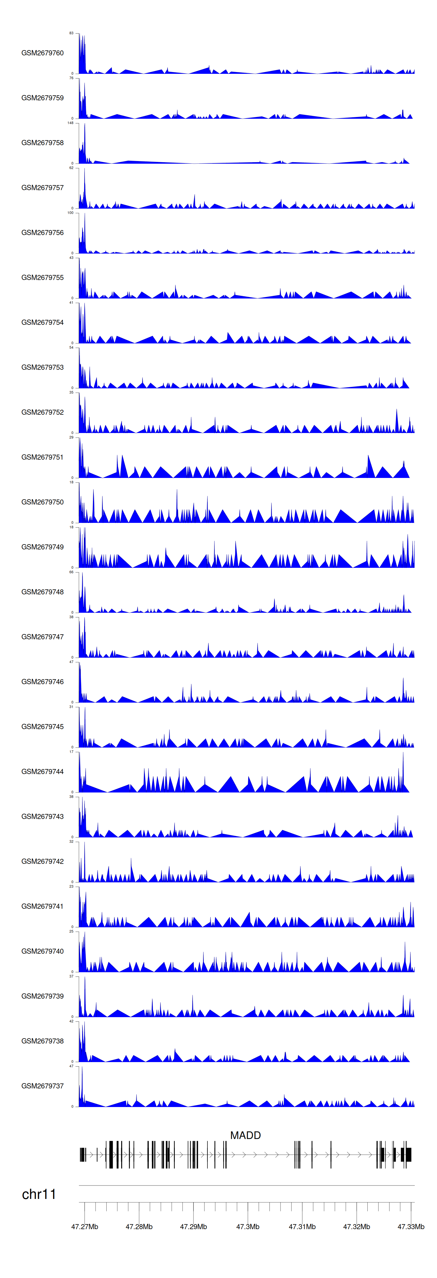 > Dataset: GSE100376 - MADD peak across samples