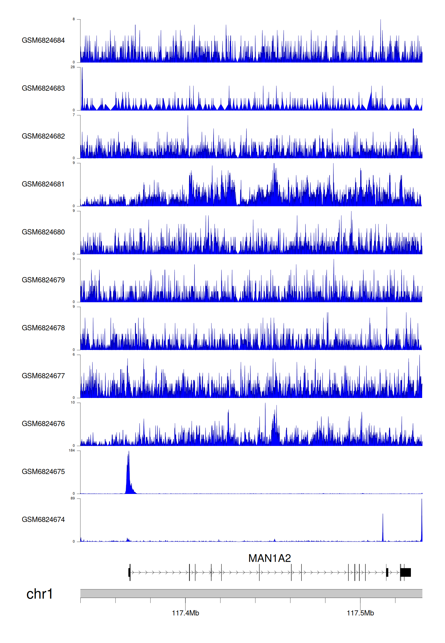 > Dataset: GSE144329 - MAN1A2 peak across samples