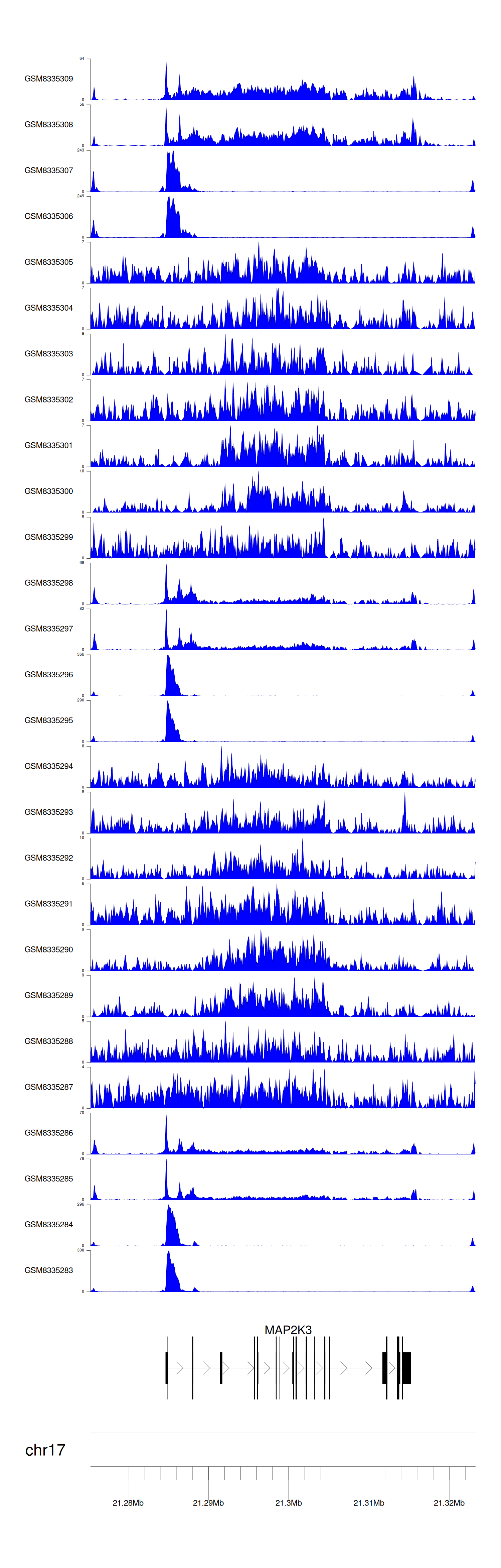 > Dataset: GSE131257 - MAP2K3 peak across samples