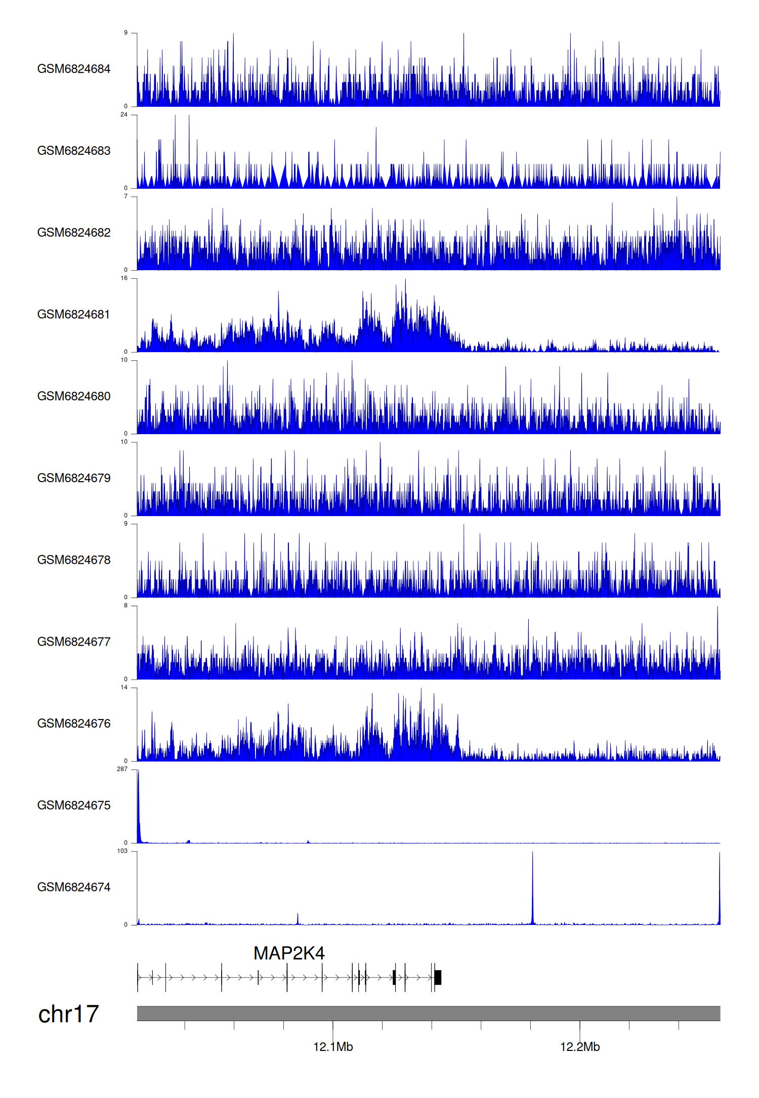 > Dataset: GSE144329 - MAP2K4 peak across samples