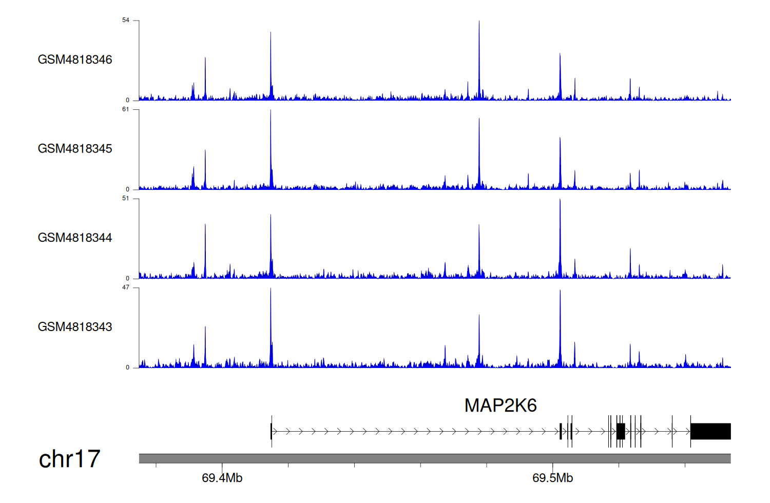 > Dataset: GSE131257 - MAP2K6 peak across samples