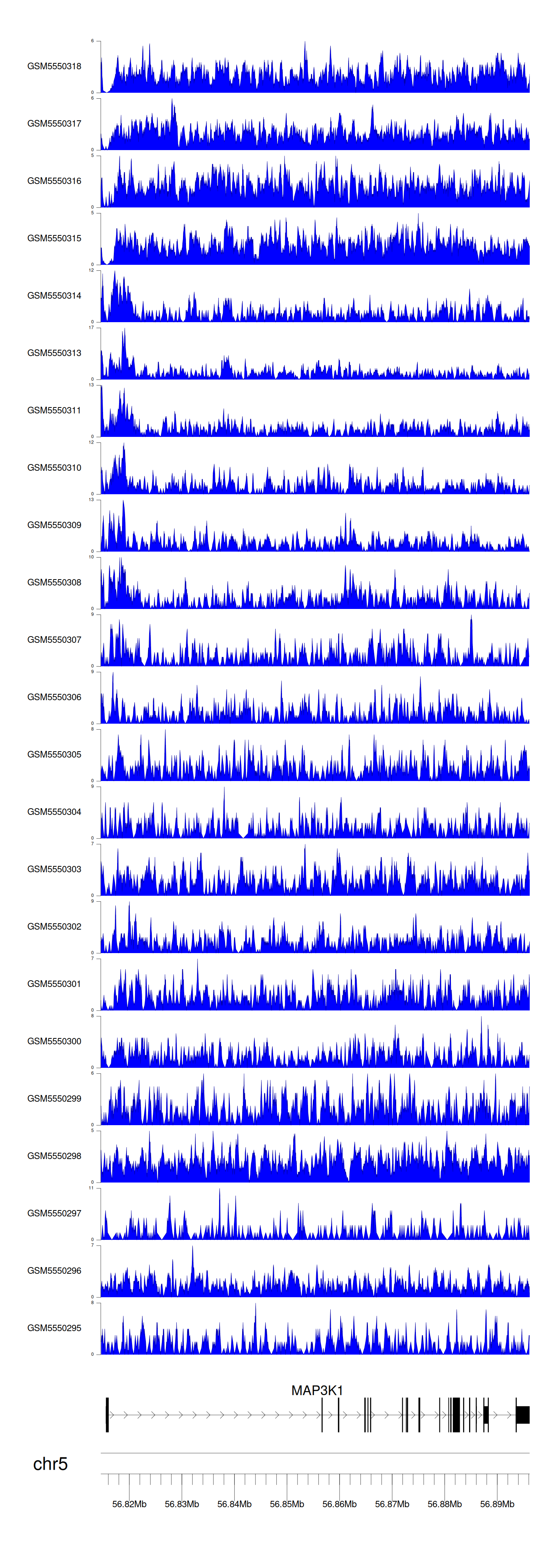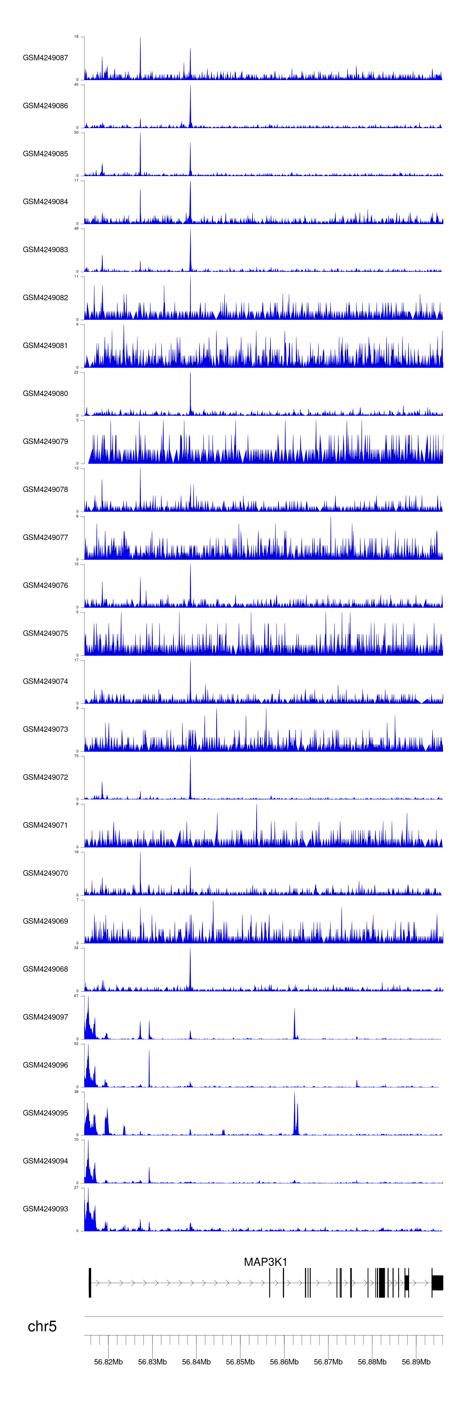 > Dataset: GSE143026 - MAP3K1 peak across samples