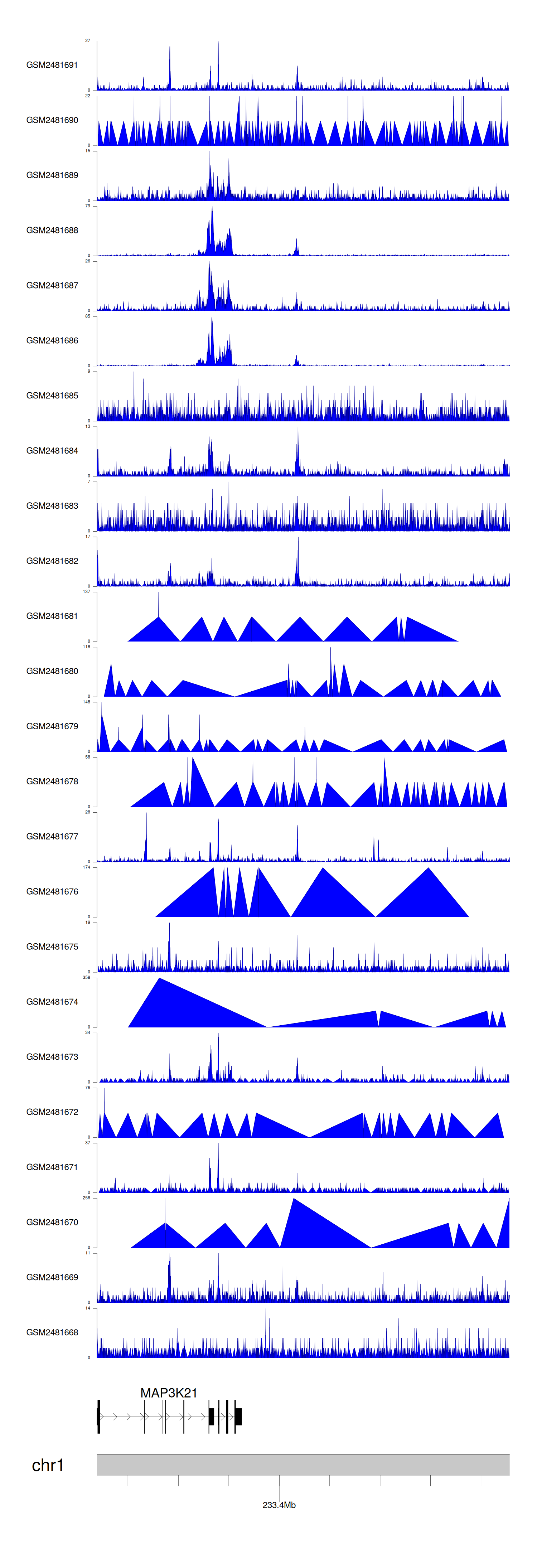 Target gene [MAP3K21] related to VISs