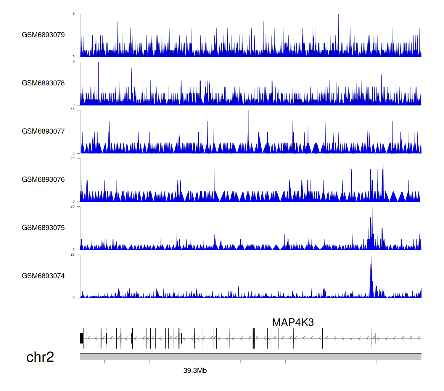 > Dataset: GSE220859 - MAP4K3 peak across samples