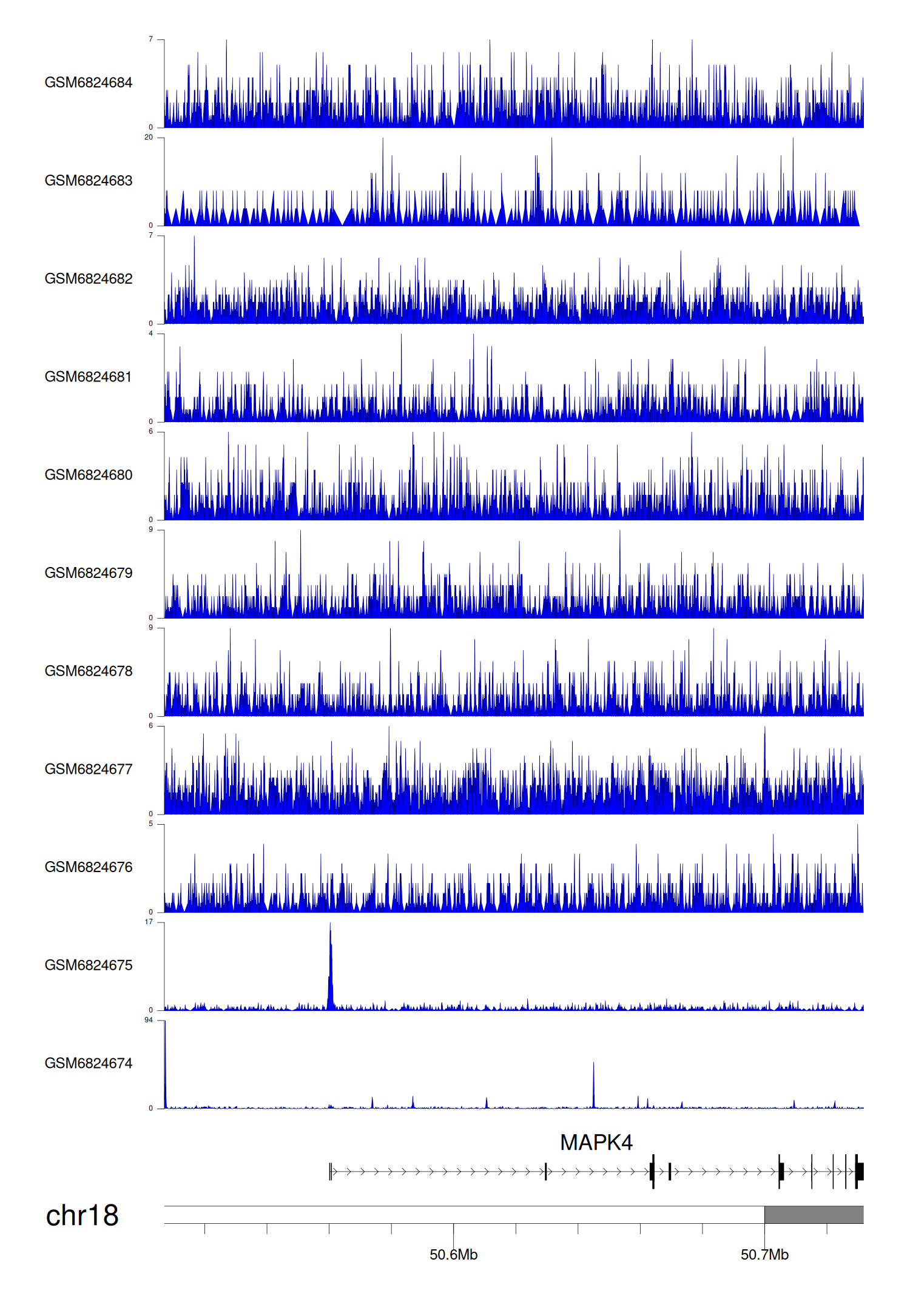 > Dataset: GSE165703 - MAPK4 peak across samples