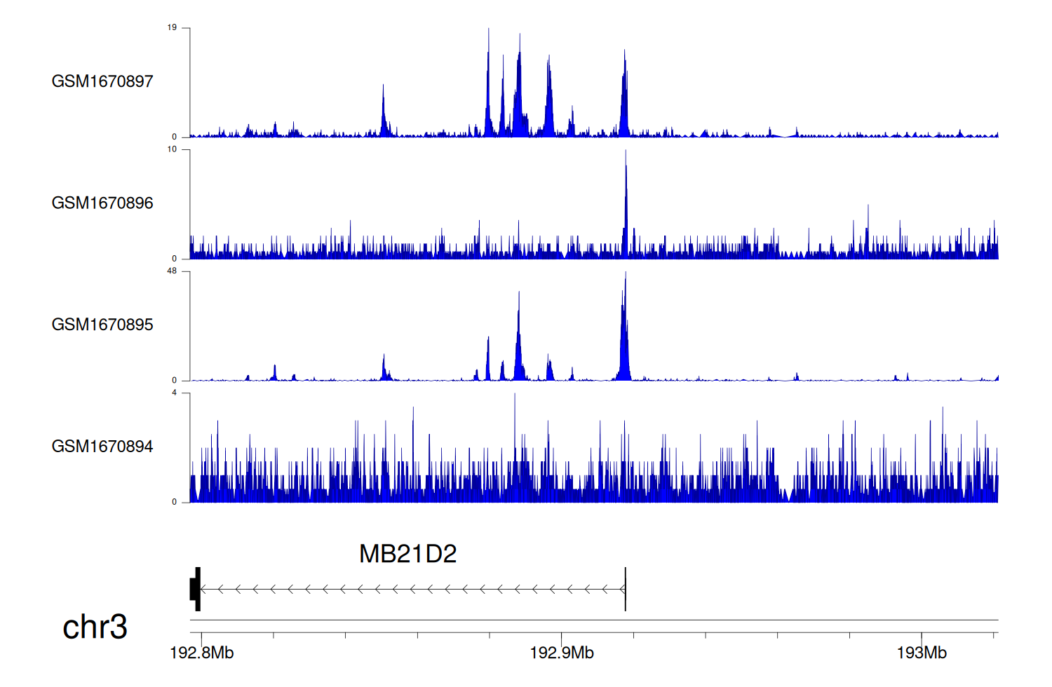 > Dataset: GSE68402 - MB21D2 peak across samples