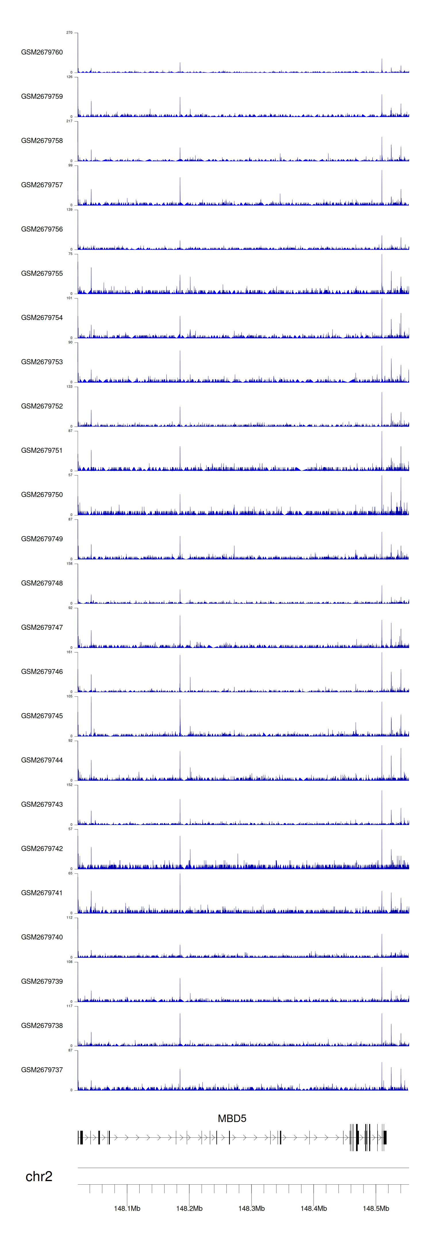 > Dataset: GSE100376 - MBD5 peak across samples