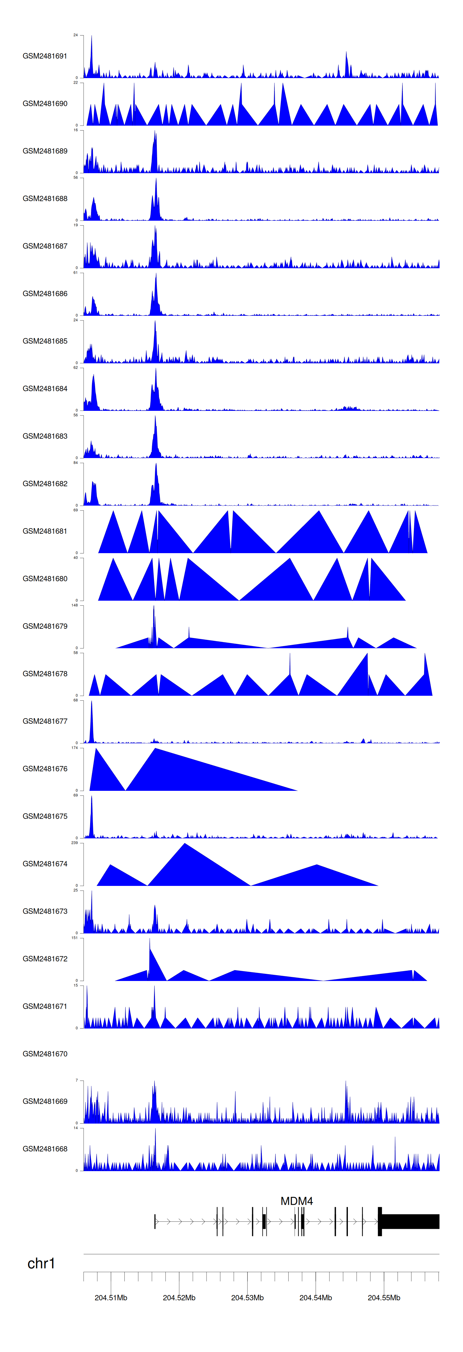 This gene encodes a nuclear protein that contains a p53 binding domain at the N-terminus and a RING finger domain at the C-terminus, and shows structural similarity to p53-binding protein MDM2. Both proteins bind the p53 tumor suppressor protein and inhibit its activity, and have been shown to be overexpressed in a variety of human cancers. However, unlike MDM2 which degrades p53, this protein inhibits p53 by binding its transcriptional activation domain. This protein also interacts with MDM2 protein via the RING finger domain, and inhibits the latter's degradation. So this protein can reverse MDM2-targeted degradation of p53, while maintaining suppression of p53 transactivation and apoptotic functions. Alternatively spliced transcript variants encoding different isoforms have been noted for this gene. [provided by RefSeq, Feb 2011] |