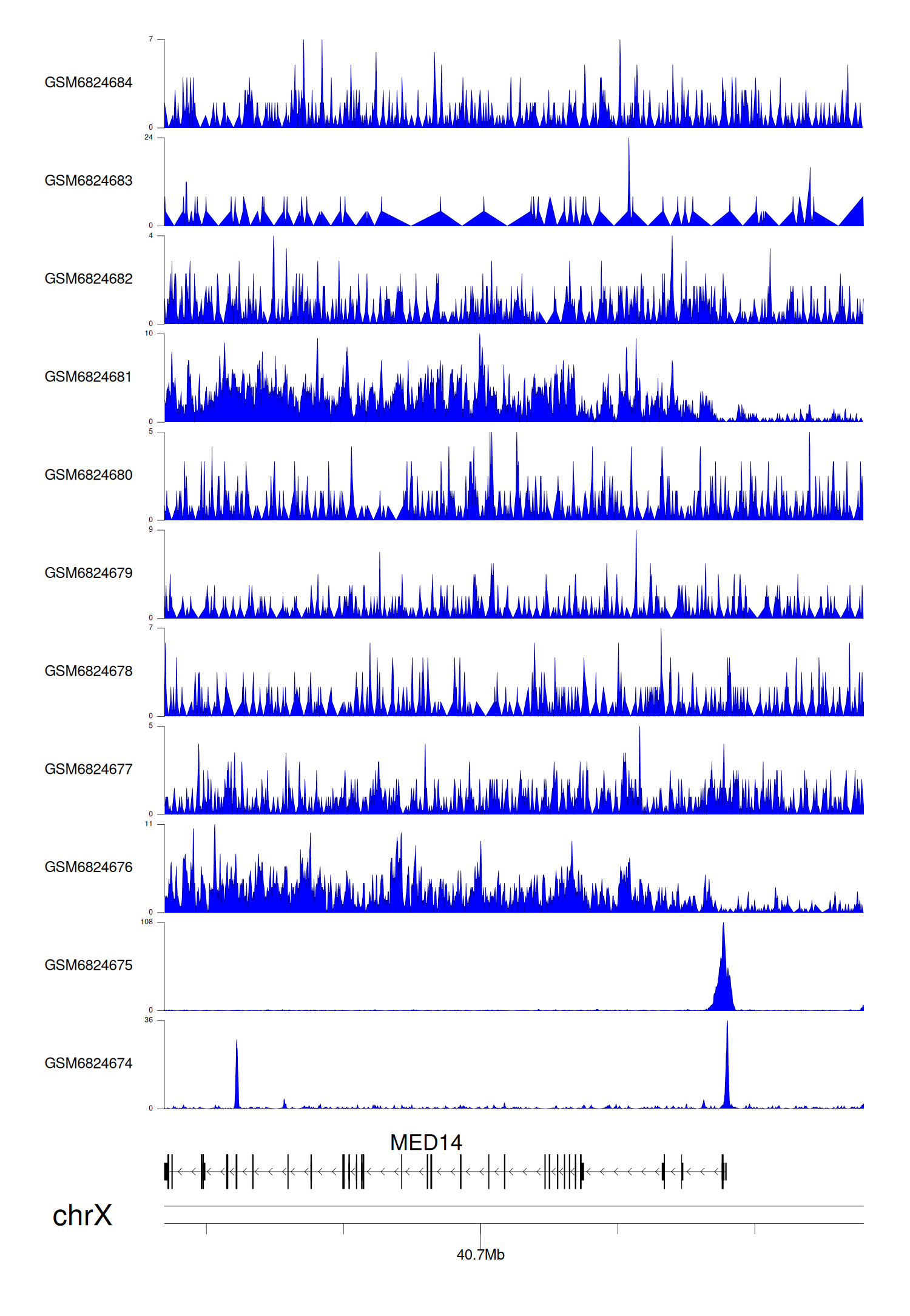 > Dataset: GSE221688 - MED14 peak across samples
