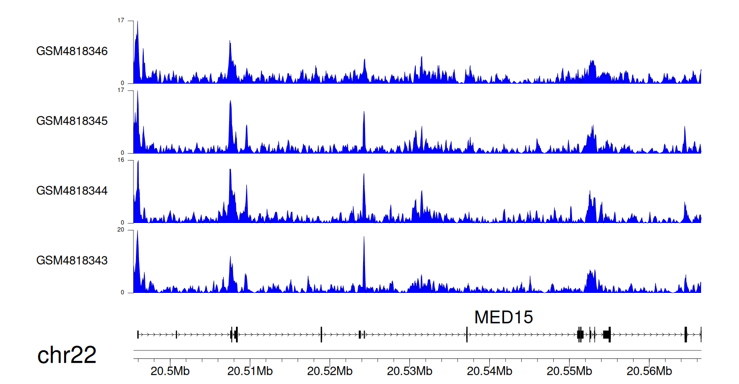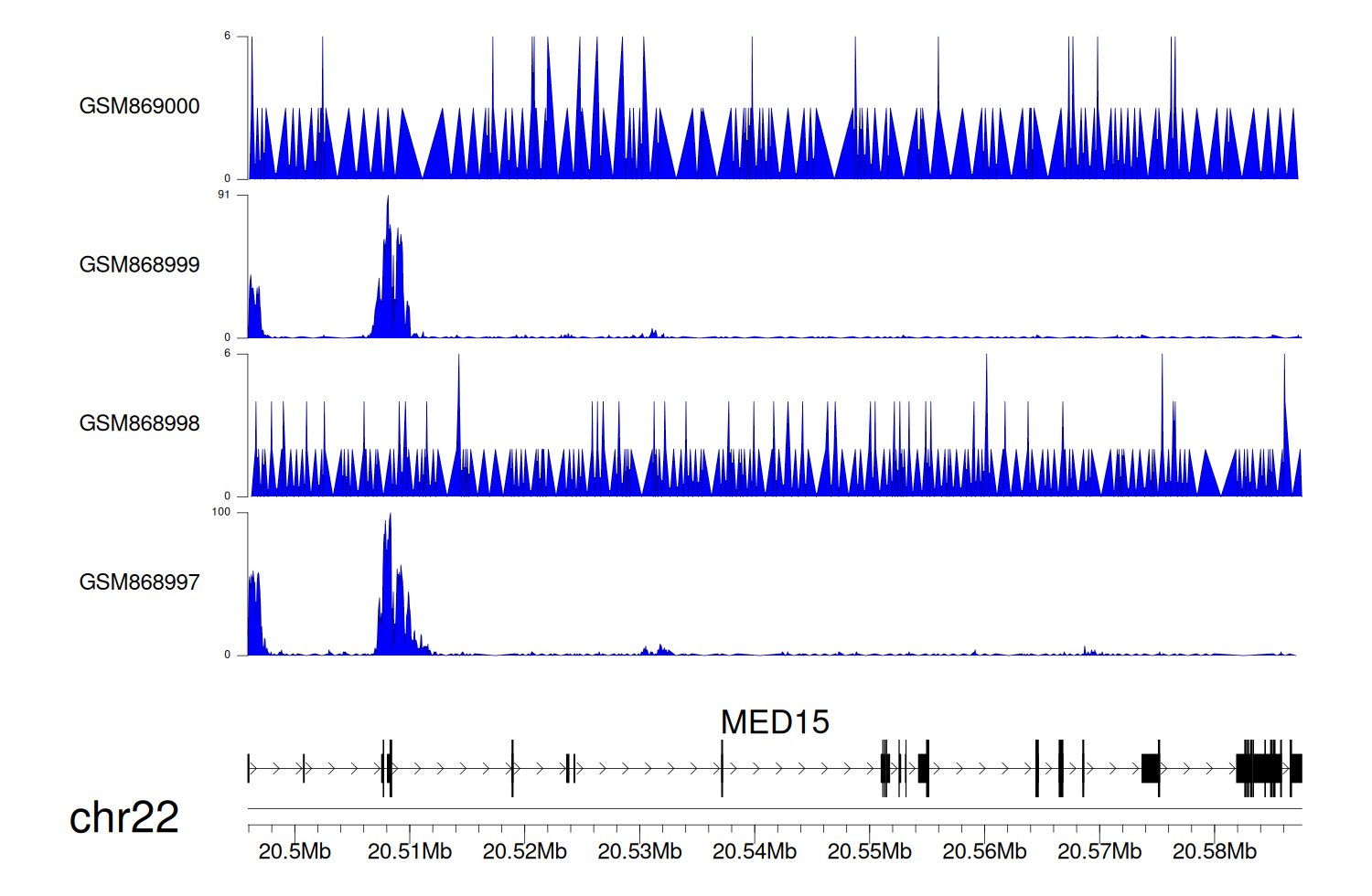 Summary The protein encoded by this gene is a subunit of the multiprotein complexes PC2 and ARC/DRIP and may function as a transcriptional coactivator in RNA polymerase II transcription. This gene contains stretches of trinucleotide repeats and is located in the chromosome 22 region which is deleted in DiGeorge syndrome. Alternative splicing results in multiple transcript variants. [provided by RefSeq, Jun 2014]