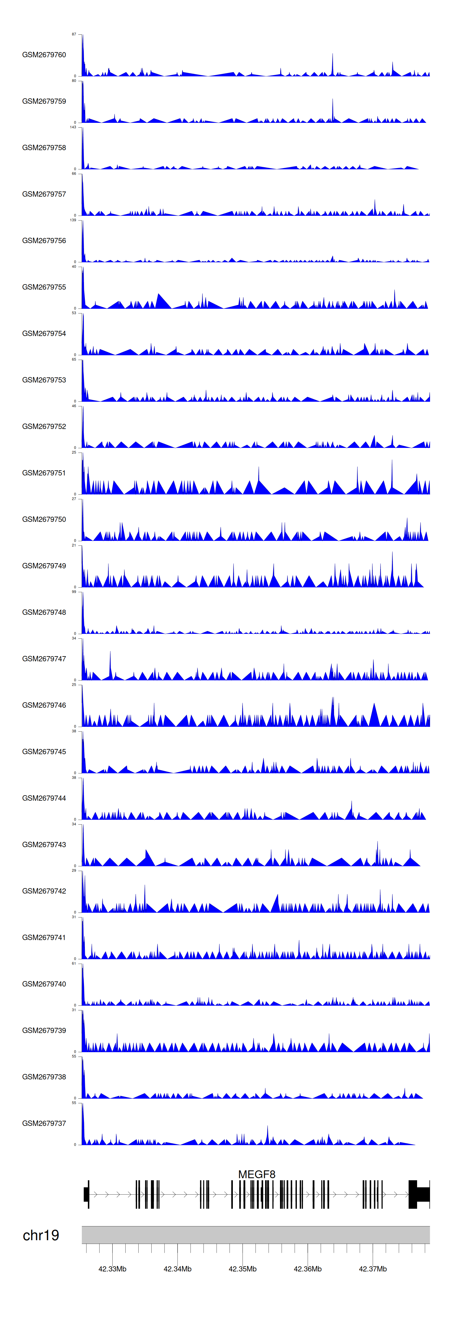 > Dataset: GSE100376 - MEGF8 peak across samples