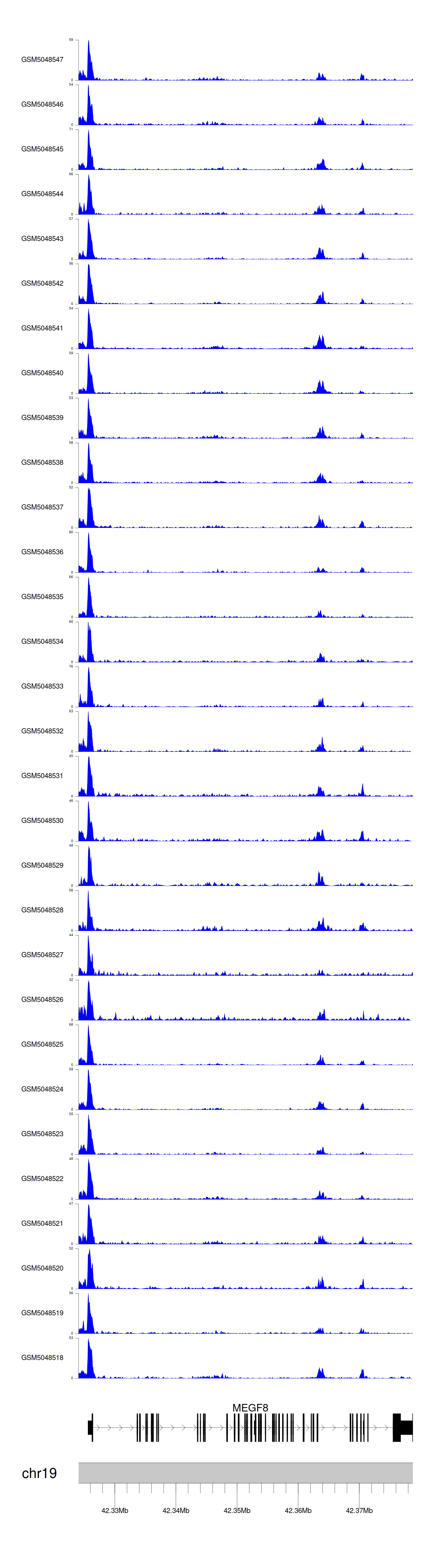 > Dataset: GSE30738 - MEGF8 peak across samples