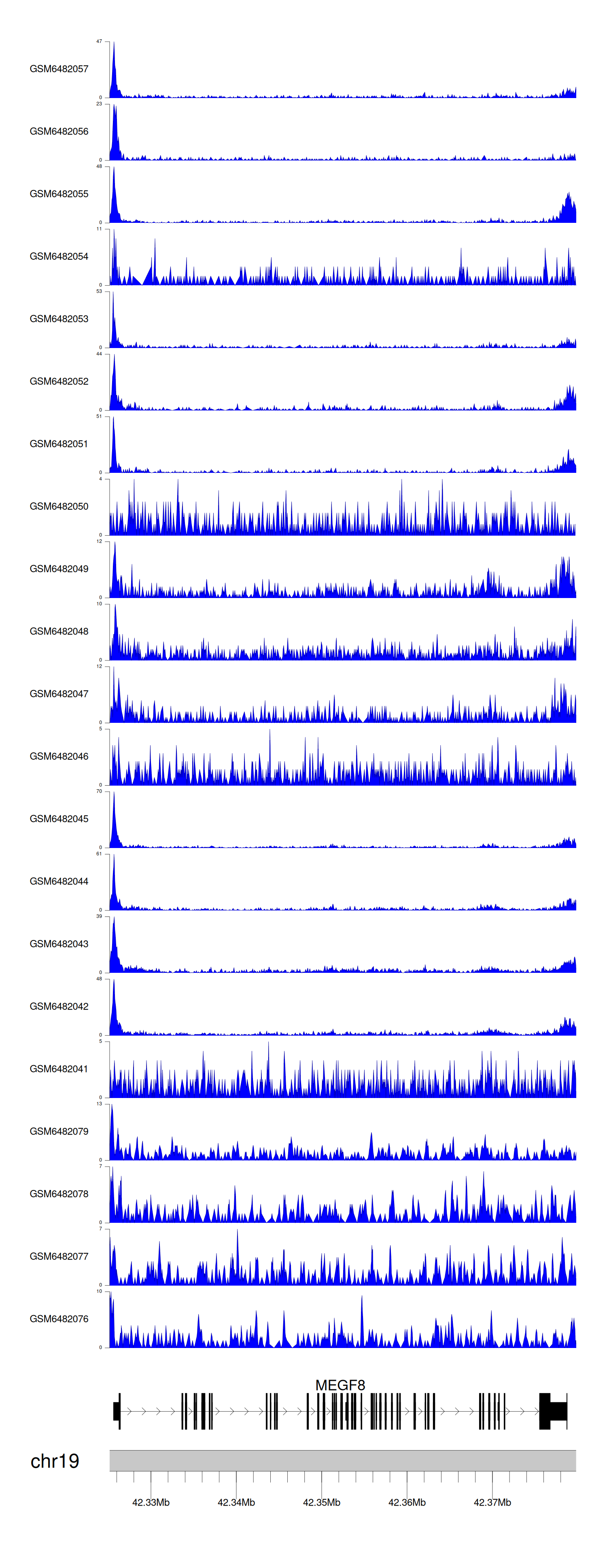 > Dataset: GSE144329 - MEGF8 peak across samples