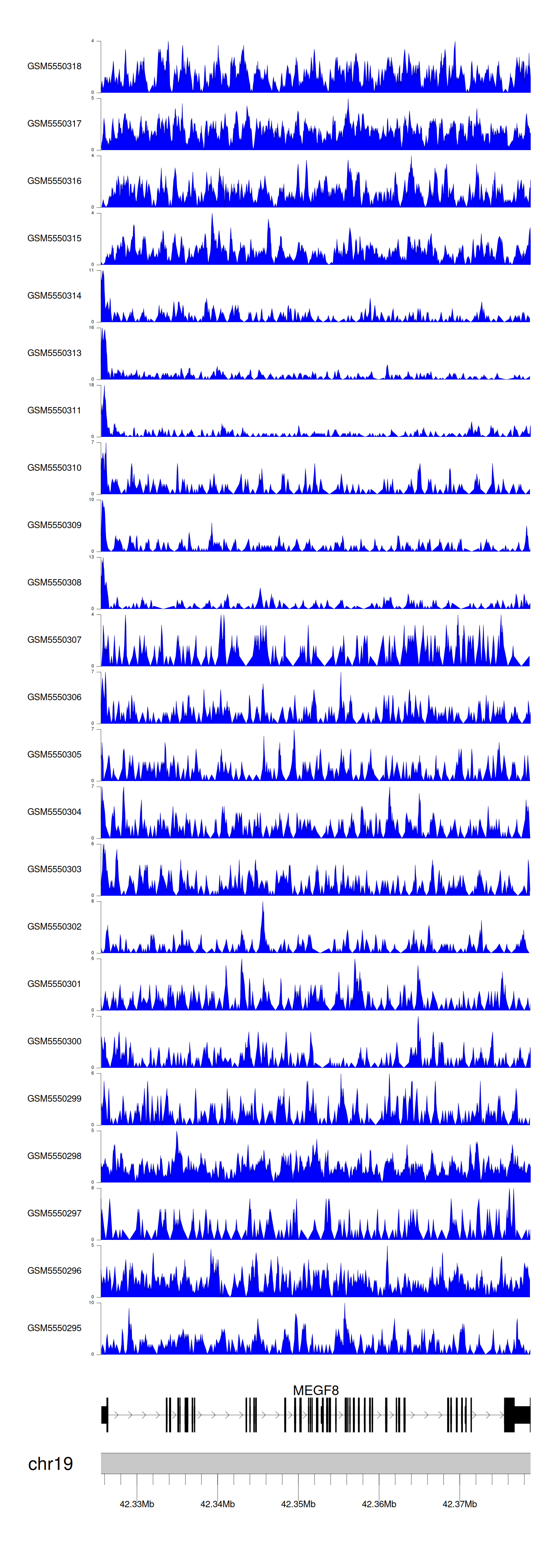 > Dataset: GSE143026 - MEGF8 peak across samples