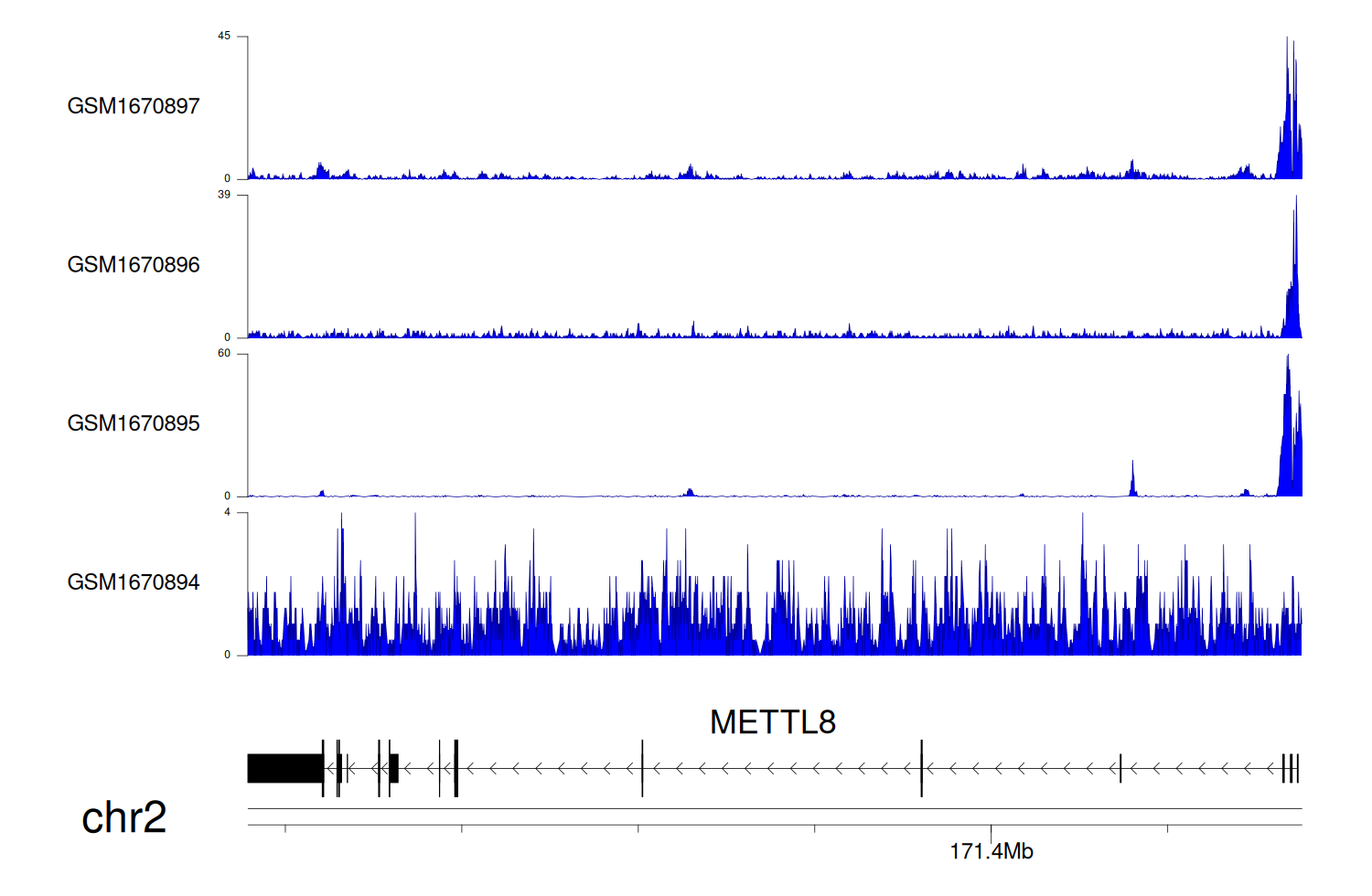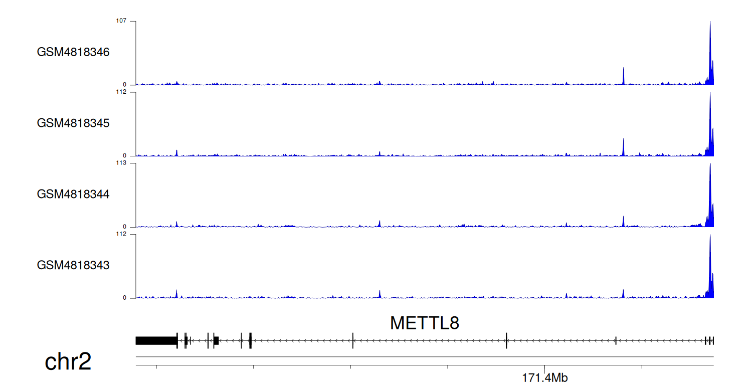 > Dataset: GSE68402 - METTL8 peak across samples