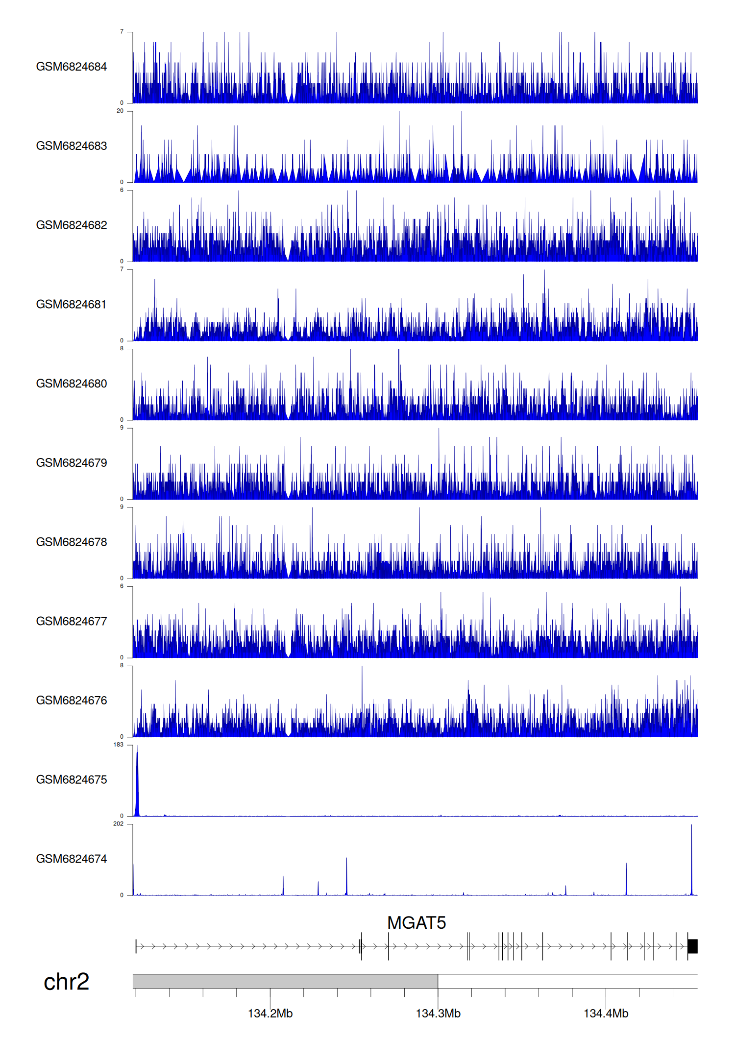 > Dataset: GSE144329 - MGAT5 peak across samples