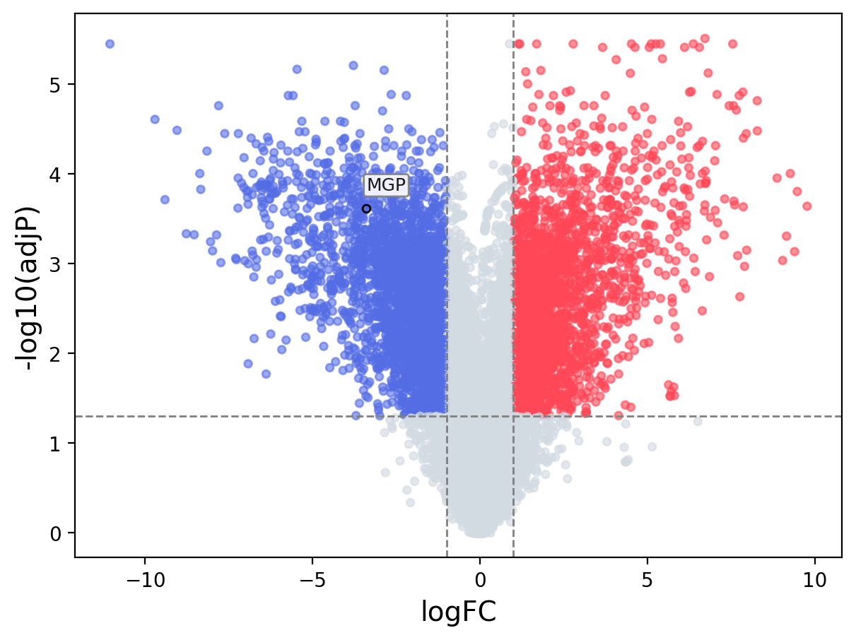 When the query gene is differentially changed in the dataset, a volcano/bar plot will be displayed.