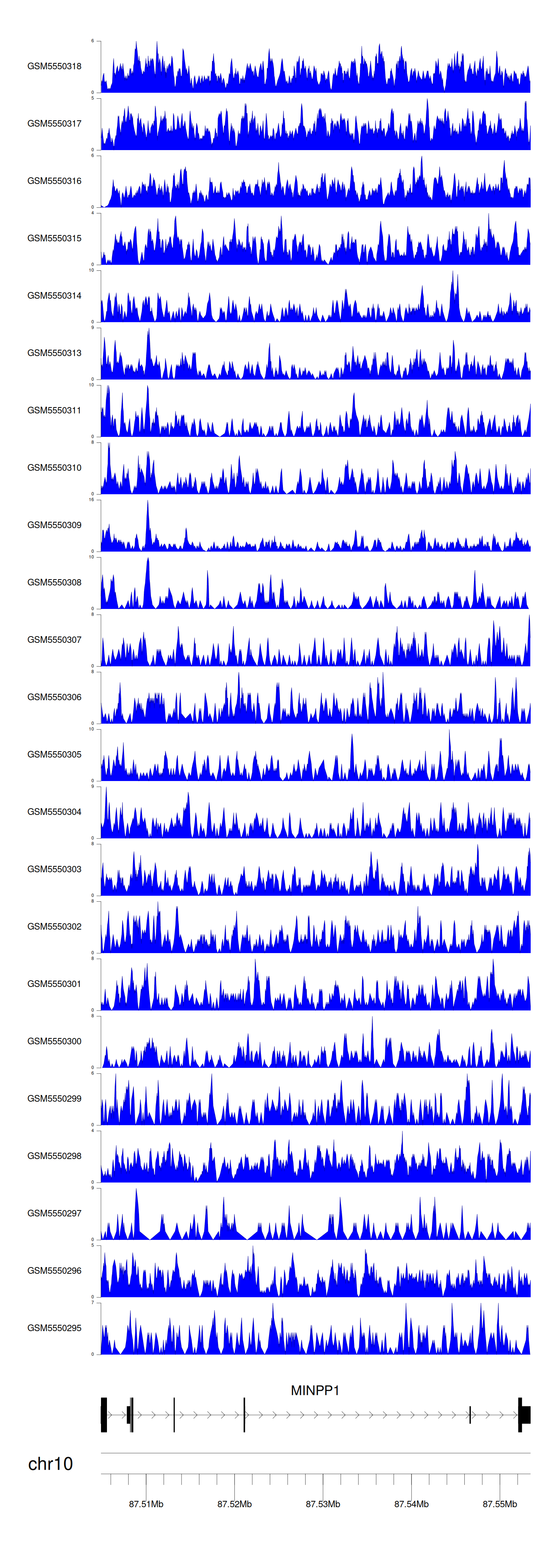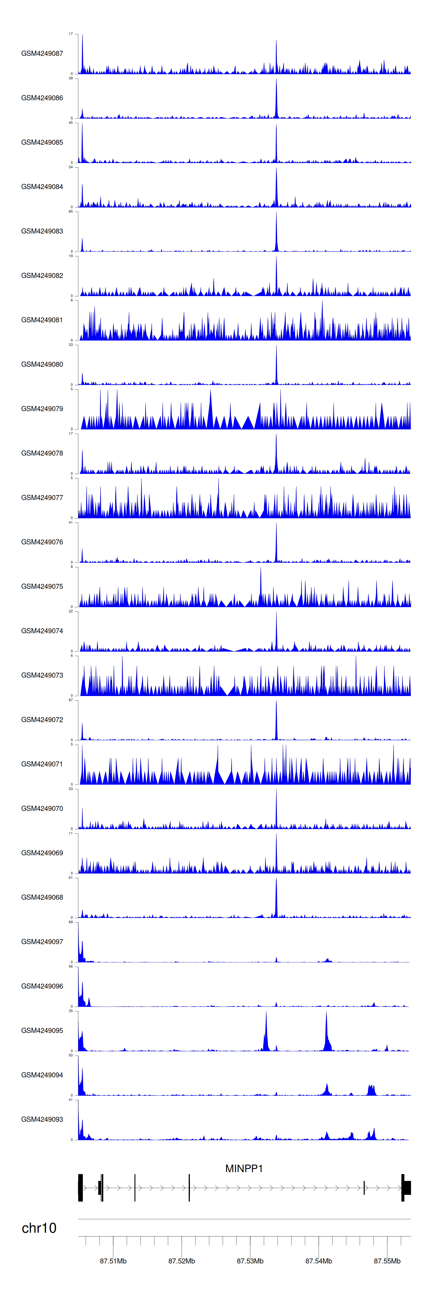 > Dataset: GSE143026 - MINPP1 peak across samples