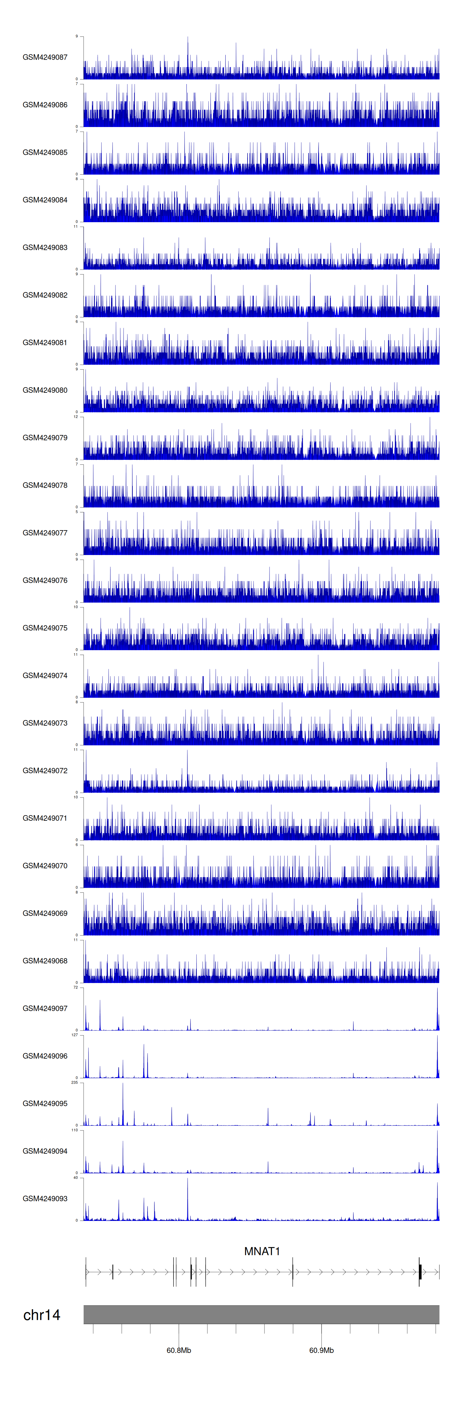 > Dataset: GSE143026 - MNAT1 peak across samples